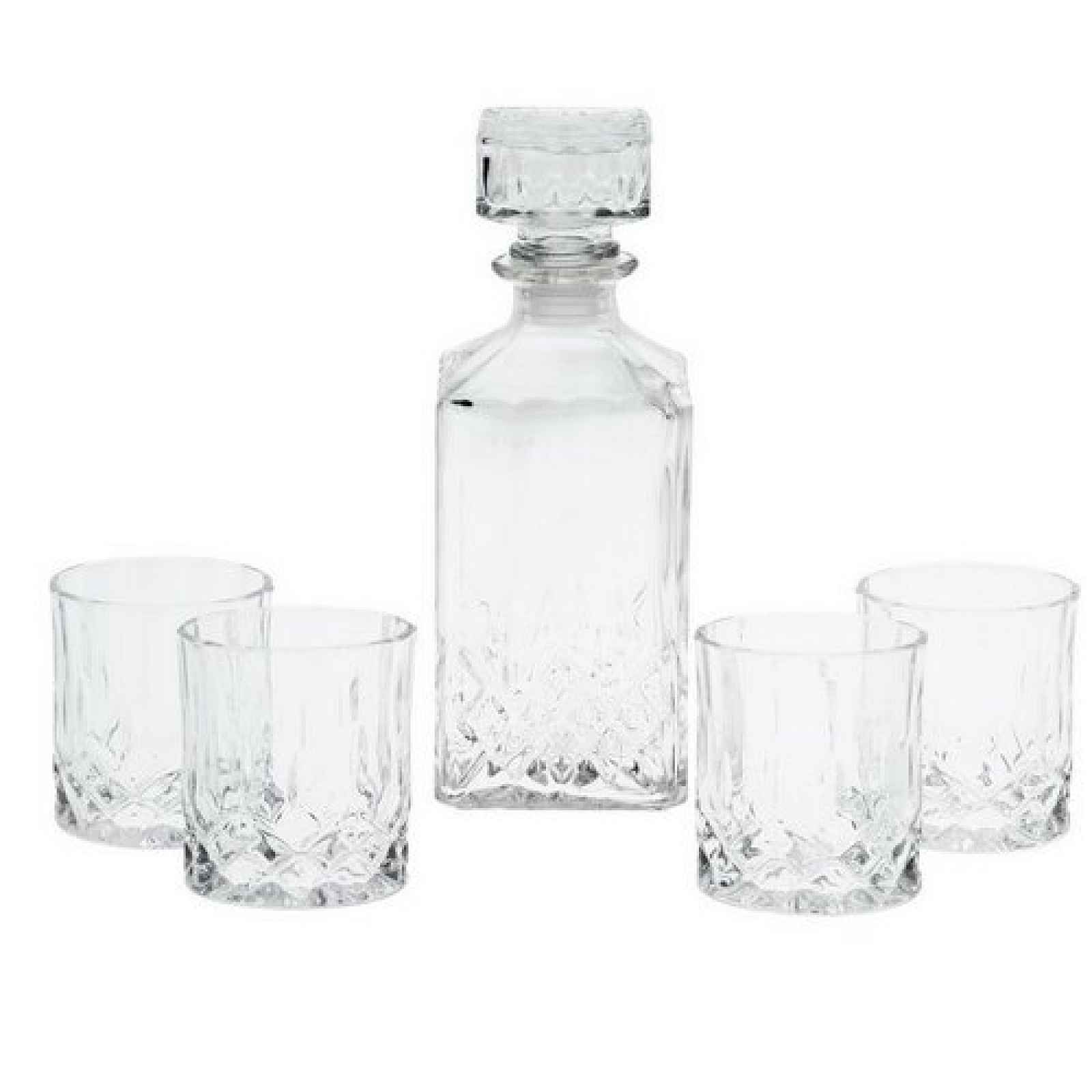 Elegantní sada na servírování whisky je vyrobena z kvalitního křišťálového skla. Sada ozvláštní sváteční stolování i posezení s přáteli. Díky hezkému balení bude i milým dárkem pro všechny milovníky whisky.Sada obsahuje: 1x karafa se zátkou o objemu 0,9 l, 23 x 9 x 9 cm, hmotnost 720 g 4x sklenice
