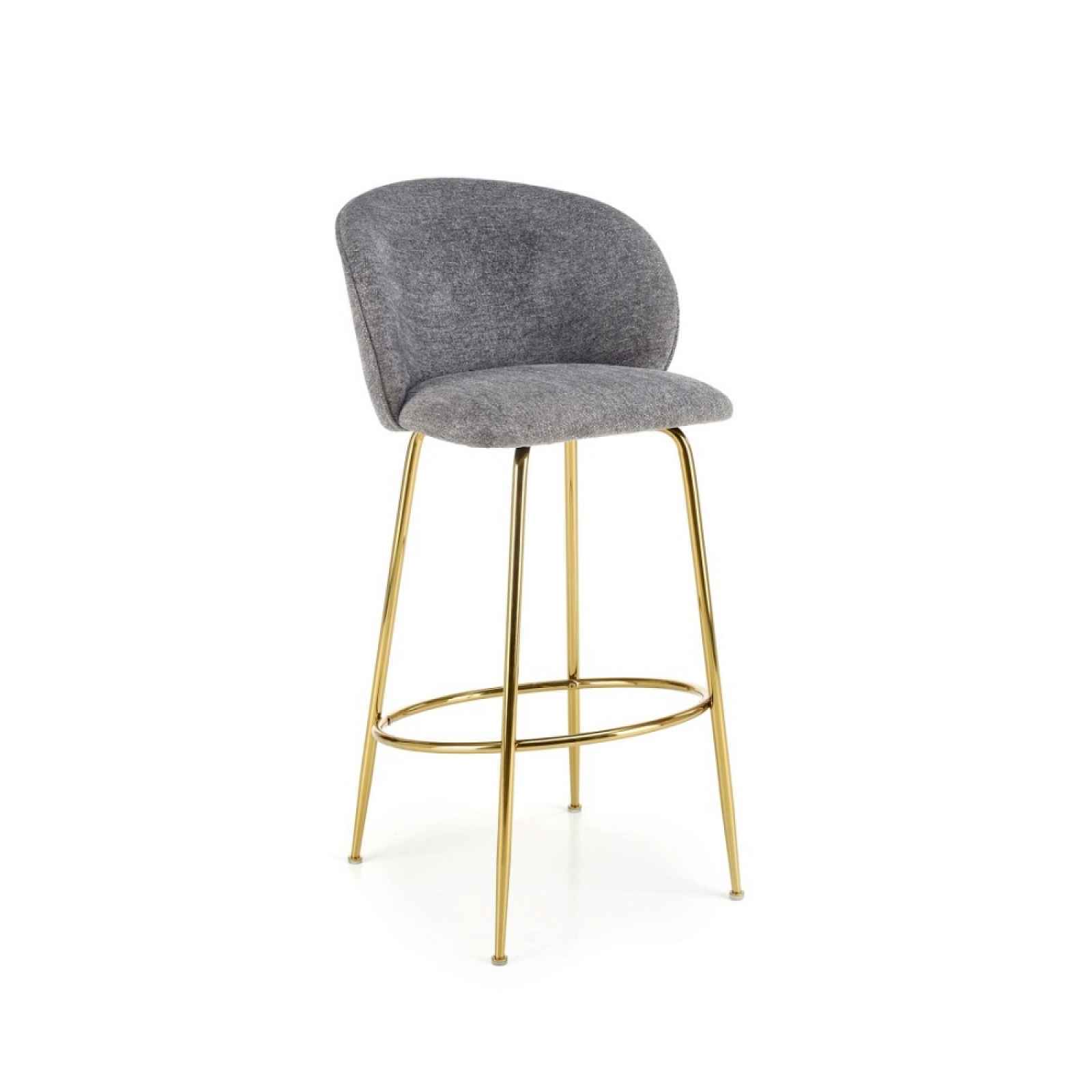 Barová židle Barva: šedá / zlatá Materiál: látka / chromovaná ocel Rozměry (šířka x hloubka x výška): 50 x 59 x 101, výška sedu 75 cm Dodáváno v demontu.