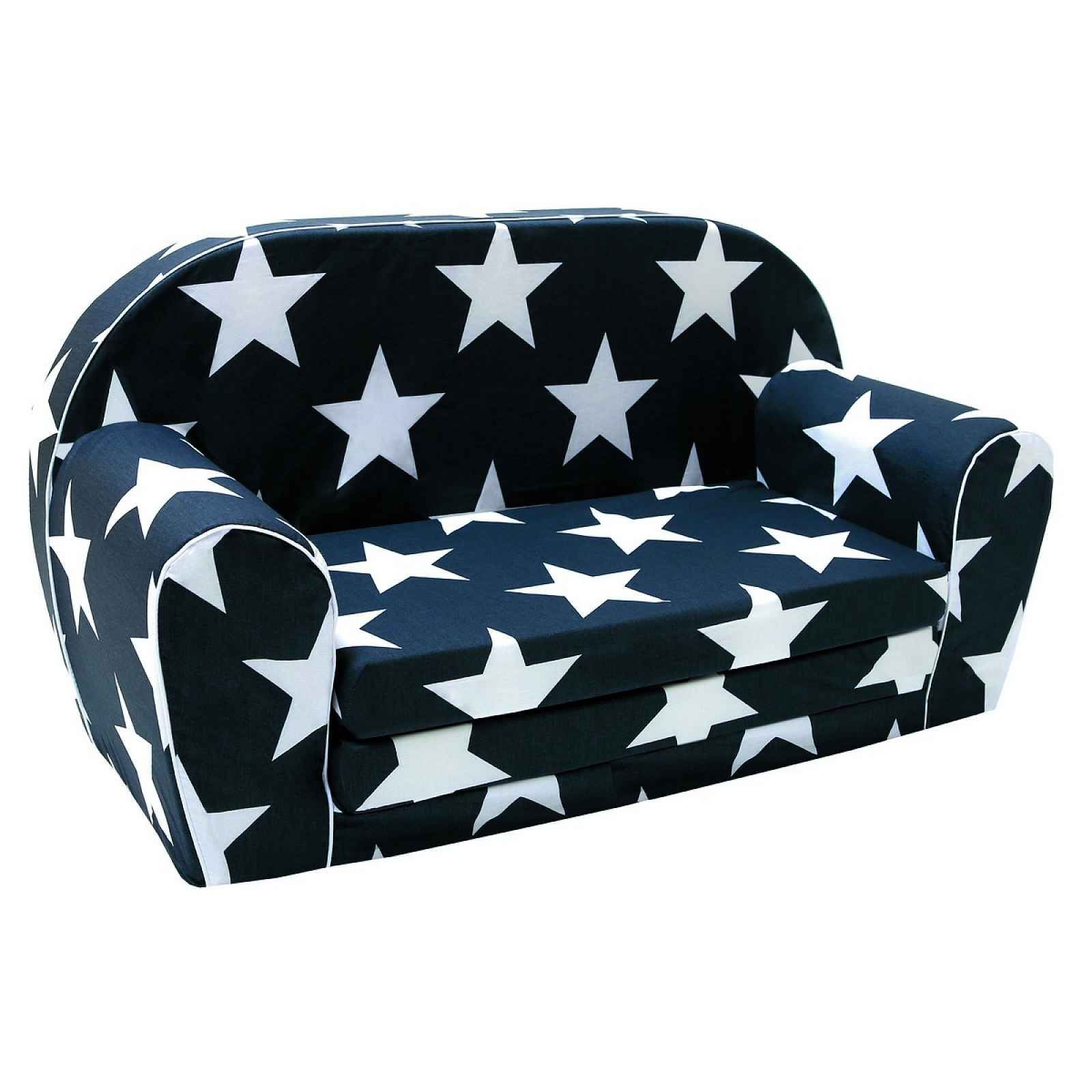 Tato rozkládací pohovka s černým potahem a motivem bílých hvězd má snímatelný potah na zip, který je lehce pratelný. Pohovka je vyrobena z měkké pěny (molitan), tudíž je nejen pohodlná, ale také super lehká a i přesto stabilní. Tato vlatnost umožňuje každému dítěti svoji pohovku přesouvat tam, kam chce. Když mají děti návštěvu, lze pohovku rozložit na velkou plochu k ležení. Šířka sedáku: 70 cm Výška područek: 77 cm Výška sedáku: 15 cm Hloubka sedáku: 25 cm Výška sedadla: 15,5 cmPlocha k ležení: 70 x 55 cm (výška molitanu 5 cm)