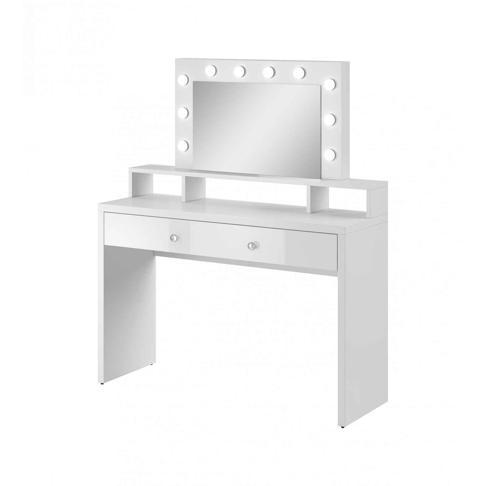 Elegantní toaletní stolek s osvětlením Barva: - bílá Rozměr (šxvxh): 120 x 136 x 40 cm Materiál: Laminovaná deska, zrcadlo - stolek má desku v bílé barvě - má osvětlení - nabízí i šuplík Dodáváno v demontu