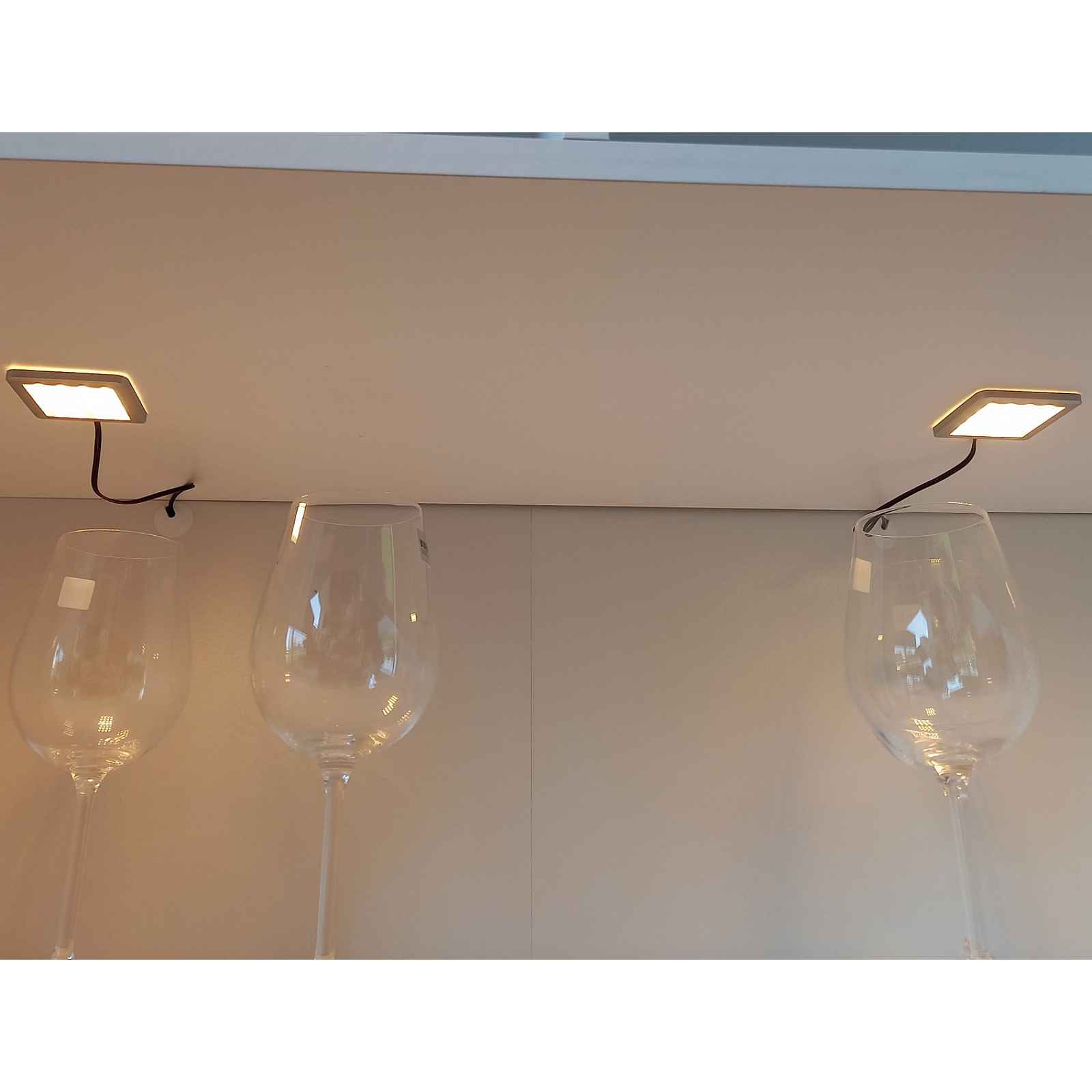 Bodové LED osvětlení v setu obsahuje 2 ks podhledového světla pro nasvícení vnitřního prostoru vitrín nebo polic. Barva světla teplá bílá. - sada obsahuje: 2 ks bodového LED světla - tvar světla: čtverec - plochá výška světla: cca 0,5 cm - stínidlo: čirý plast/rám: šedá alu - zabudované LED diody: 2 x 16 LED diod - barva světla: teplá bílá - včetně přívodových kabelů, trafa a vypínače - příkon: 2 x 1,5 W - napájení: 12 V - třída energ. účinnosti A - pro jakékoliv nasvícení vnitřních a vnějších prostor nábytku (obývacích stěn, přihrádek, vitrín, komod, polic, podhledů atd.) - univerzální použití: stačí pouze nalepit horní stranou k povrchu nábytku - dodáváno v demontu
