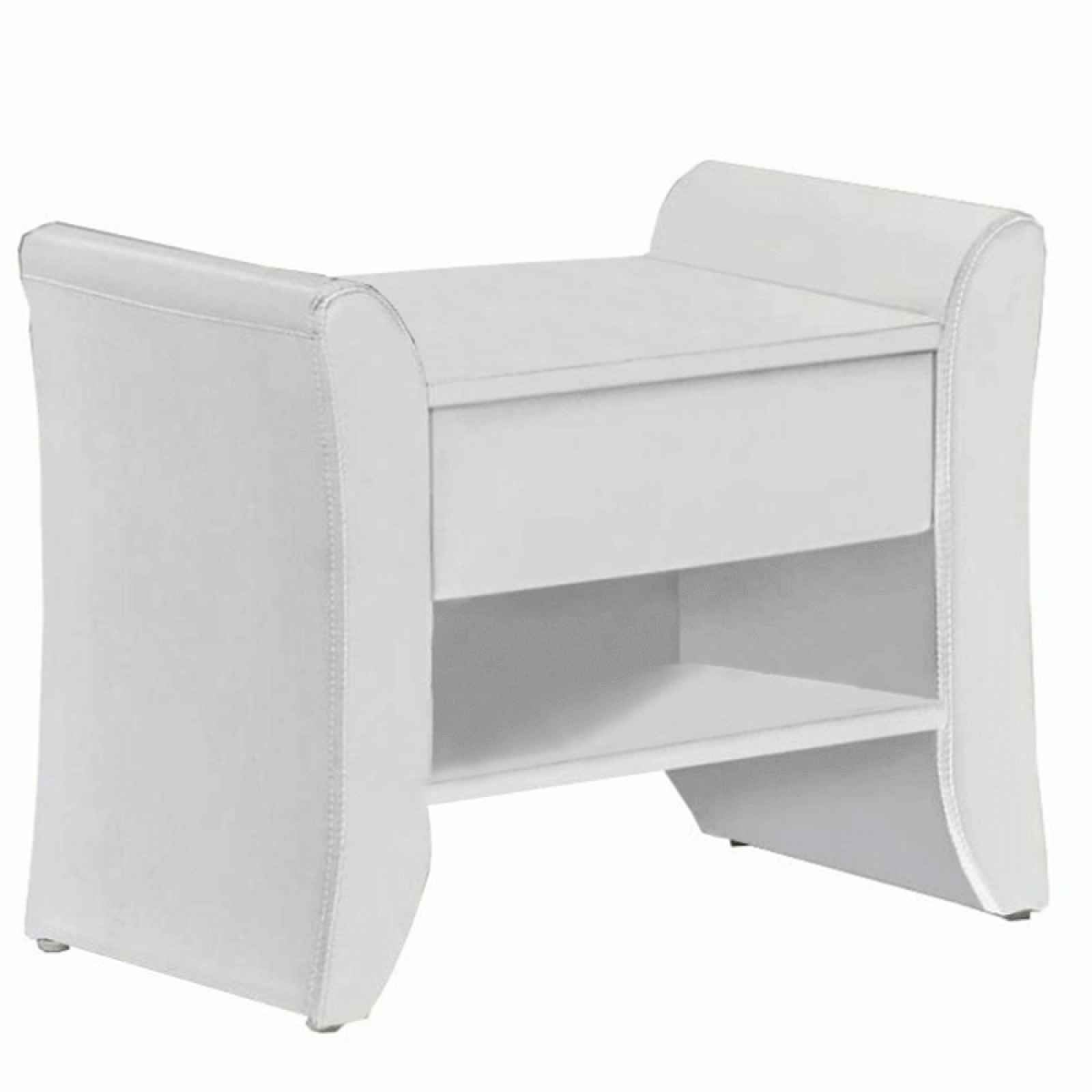 Čalouněný noční stolek, bílá Noční stolek má jednu poličku a jeden šuplík. Materiál: ekokůže Barva: bílá Rozměry (šxhxv): 47 x 44 x 37 cm Dodání v demontu. Záruka 24 měsíců.