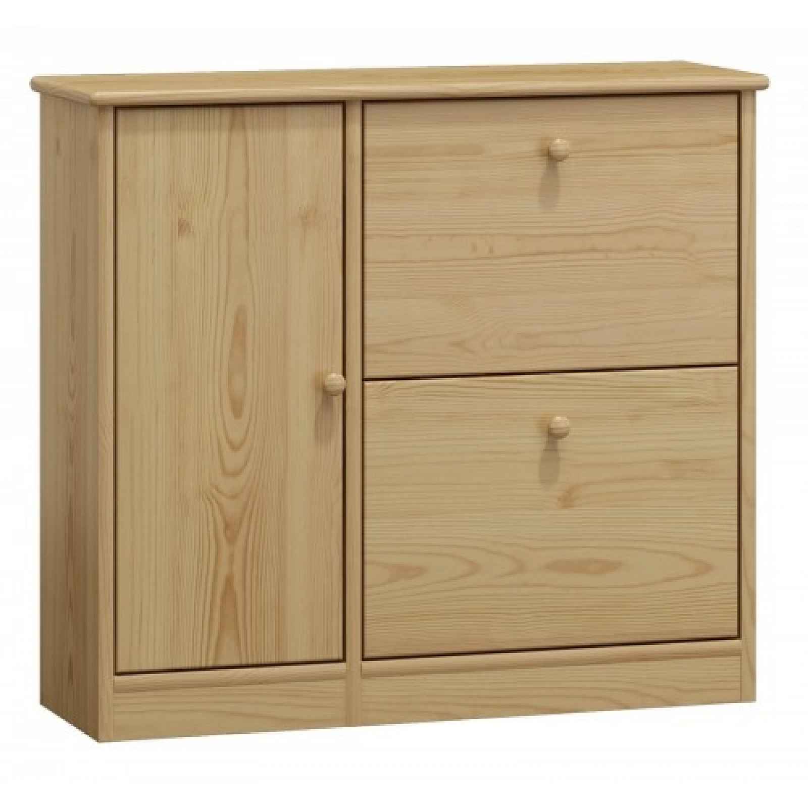 Botník se skříňkou a dvěma výklopy Materiál: masiv borovice Rozměry (výška x šířka x hloubka): 80 x 90 x 29 cm Dodáváno v demontu.