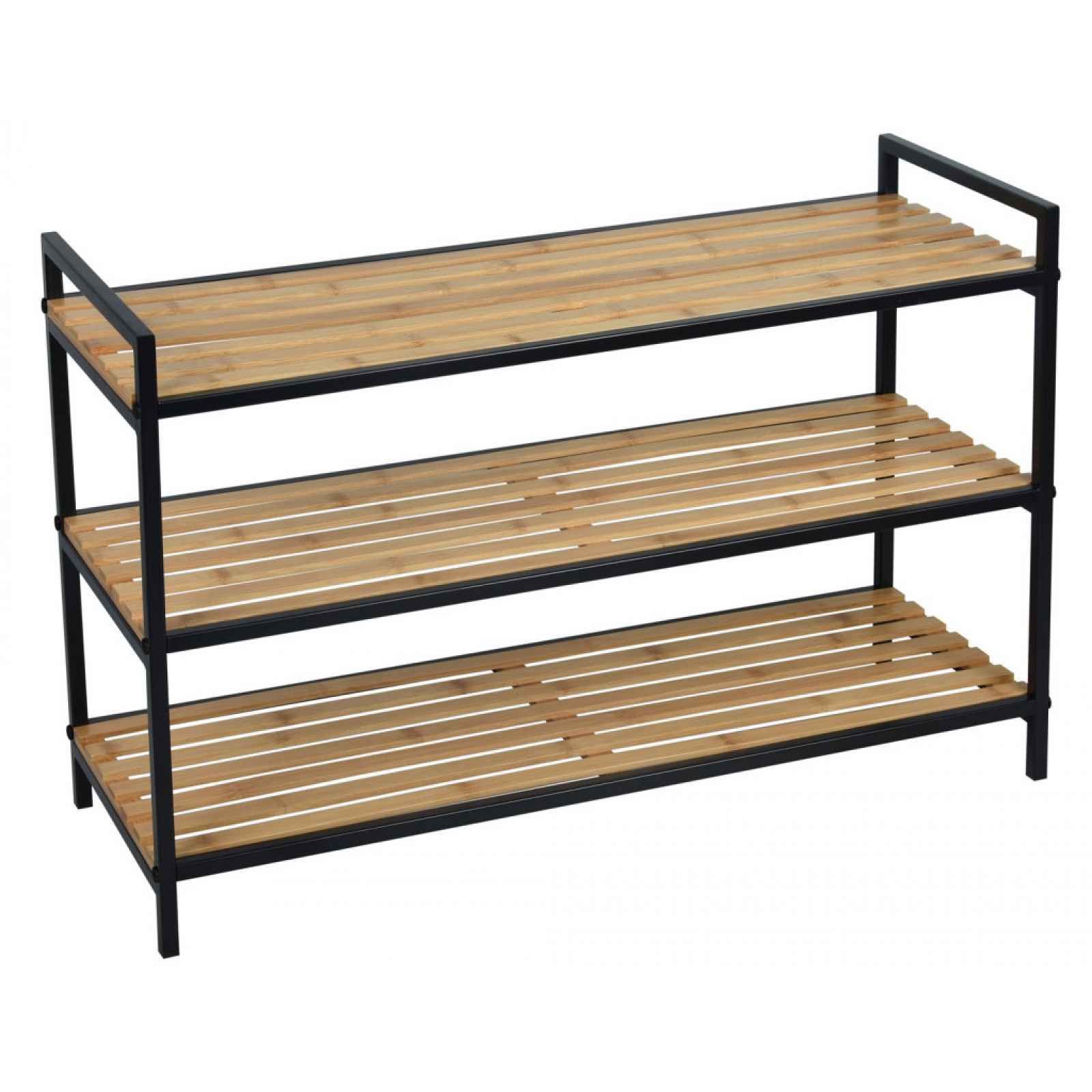 Botník se 3 policemi má rám konstrukce z černého kovu a police z bambusového dřeva. V prostoru předsíně nebo šatny bude působit útulně. - konstrukce: kov, bambusové dřevo - kovový rám: hranatý profil 13x13 mm - povrchová úprava: černý lak - 3 x police z bambusových latěk - doporučená nosnost police do 5 kg - volná výška mezi policemi: 17 cm - do předsíně i šatny - útulný přírodní vzhled - dodáváno v demontu