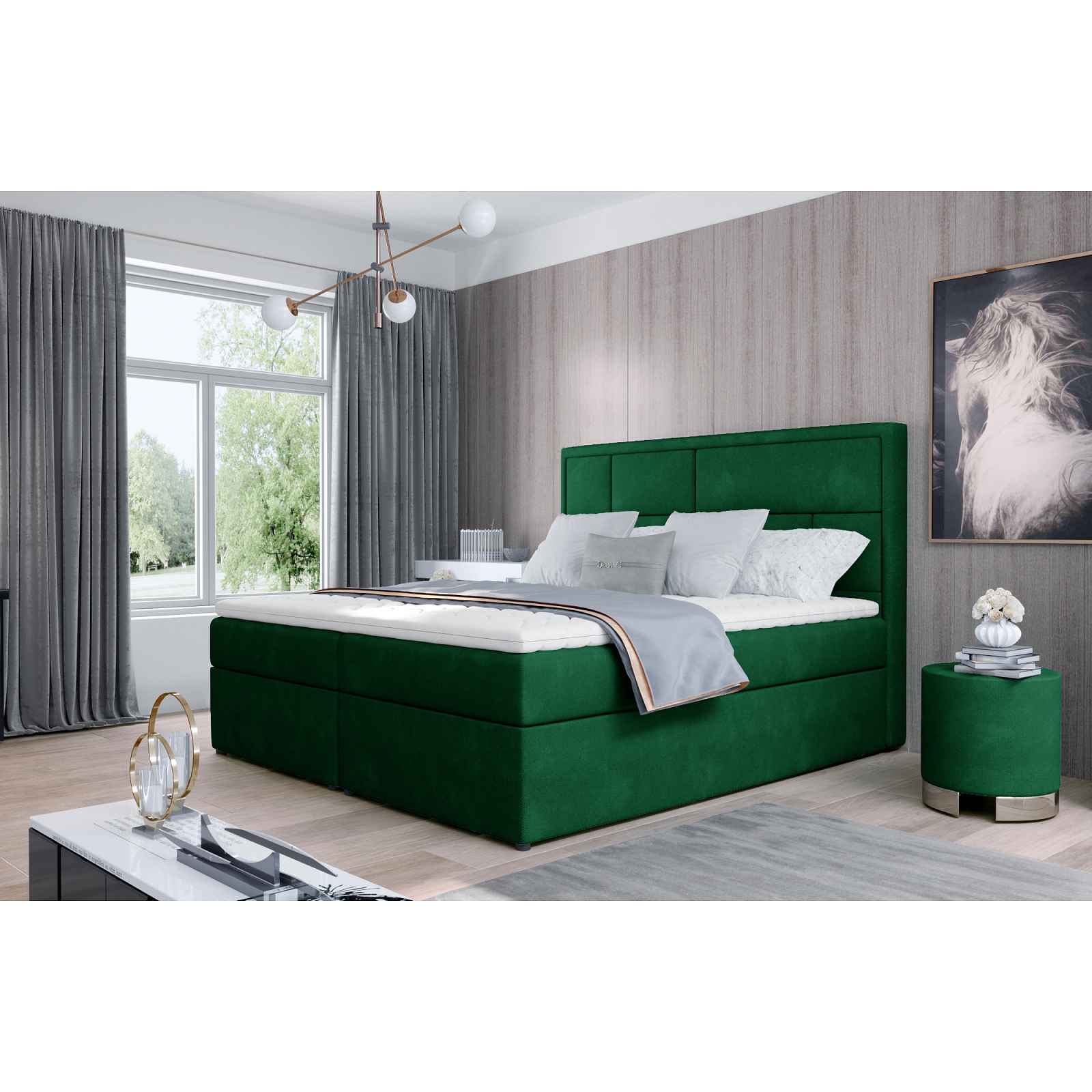 Postel boxspring 140x200 cm V ceně postele je topper.Postel má úložný prostor - viz fotografie. Další fotografie postele jsou pouze ilustrační (jiná barva)! Potahová látka: Kronos 19 = zelená Rozměry (šxhxv): 140 x 215 x 53/115 cm Ložná plocha (šxh): 140 x 200 cmMateriál: - bonellové pružiny - nožky vysoké 2 cm Dodání v demontu