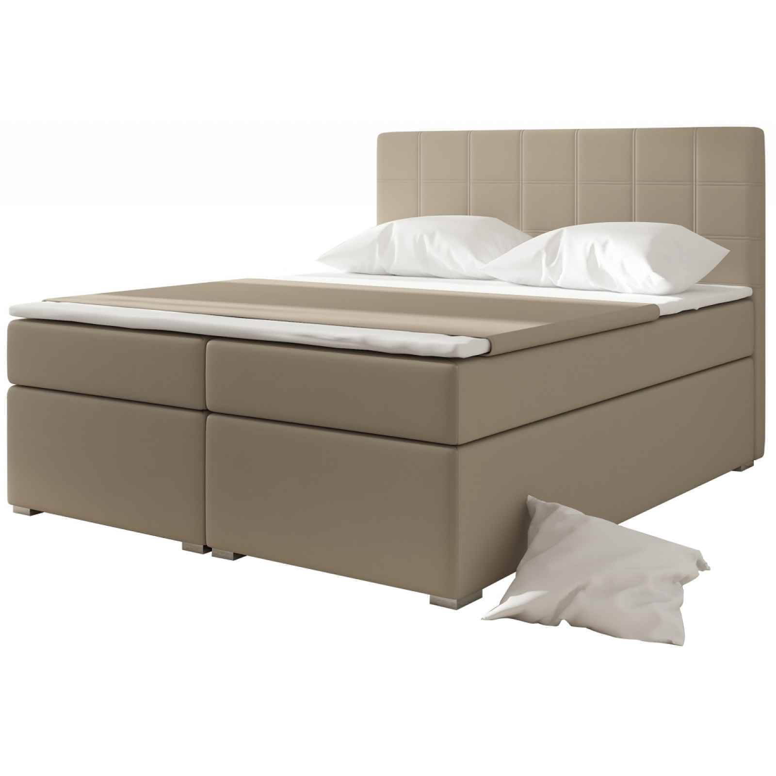 Postel boxspring 140x200 cm V ceně postele je topper.Postel má úložný prostor - viz fotografie. Další fotografie postele jsou pouze ilustrační (jiná barva)! Potahová ekokůže: Soft 33 = béžová ekokůže Rozměry (šxhxv): 140 x 205 x 60/117 cm Ložná plocha (šxh): 140 x 200 cmMateriál: - bonellové pružiny Dodání v demontu
