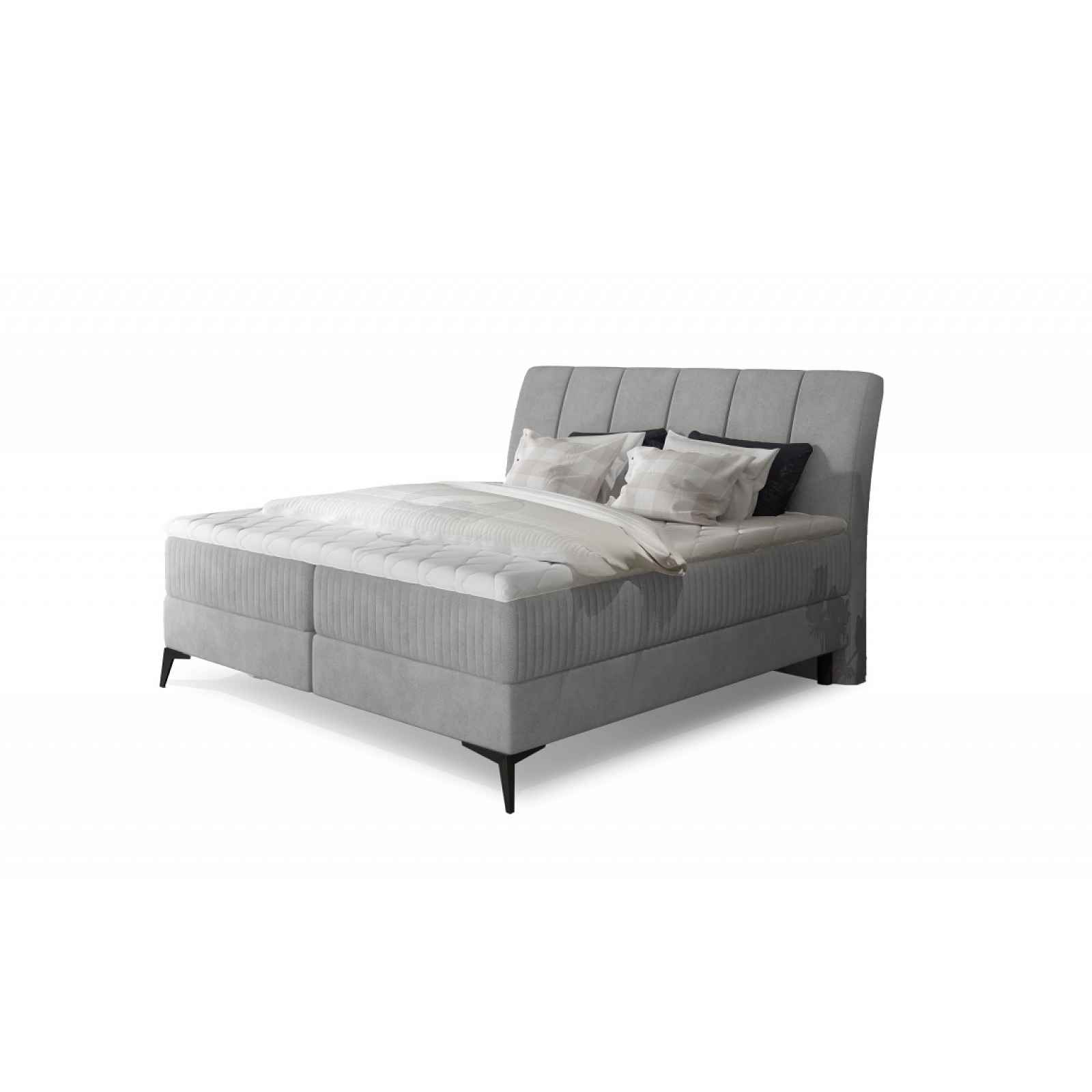 Postel boxspring 160x200 cm V ceně postele je topper.Postel má úložný prostor - viz fotografie. Další fotografie postele jsou pouze ilustrační (jiná barva)! Potahová látka: Soro 83 = šedá látka Rozměry (šxhxv): 163 x 221 x 57/118 cm Ložná plocha (šxh): 160 x 200 cmMateriál: - bonellové pružiny - černé kovové nožky vysoké 13 cm Dodání v demontu