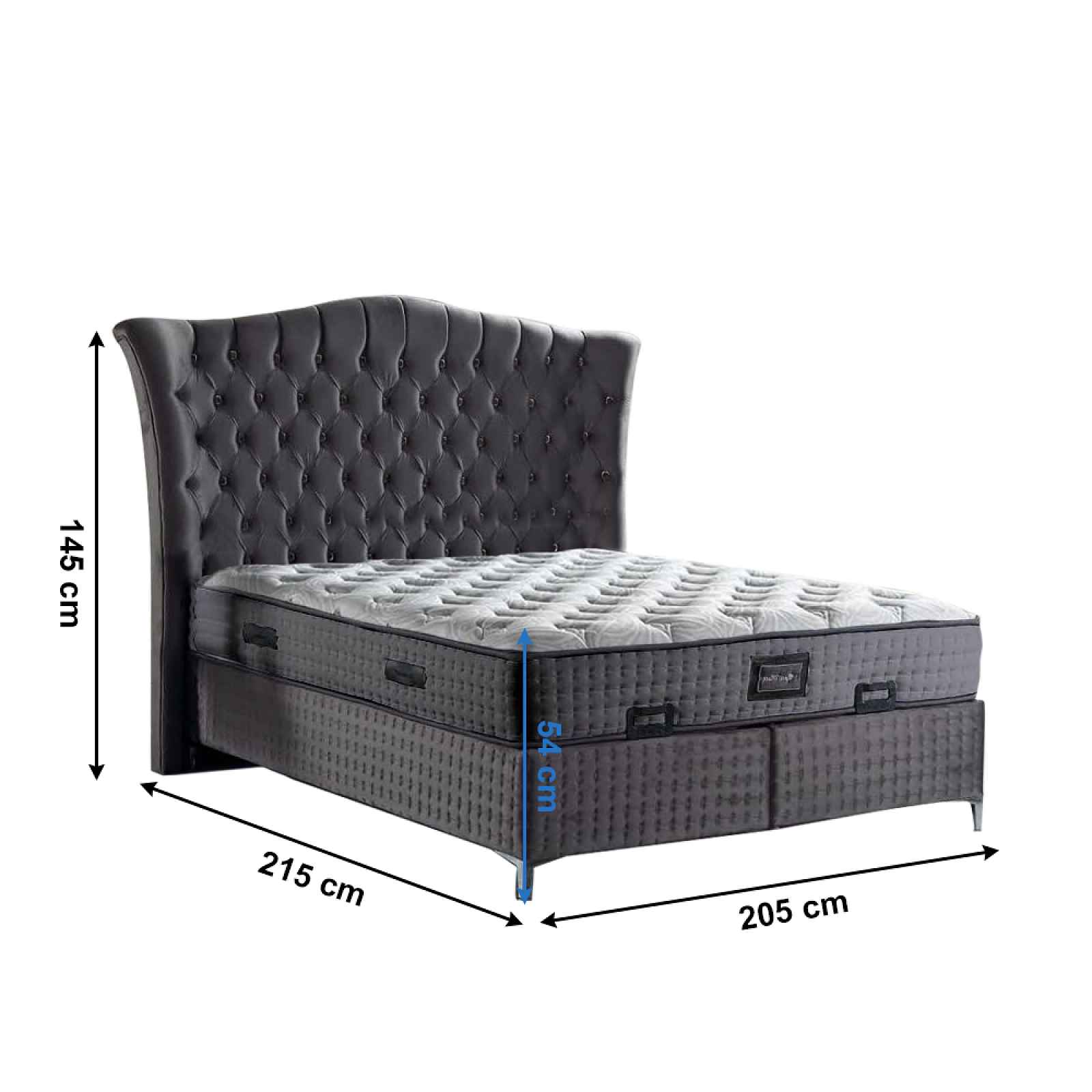 Luxusní, moderní a komfortní boxspringová postel MERSIA se stane dominantou vaší ložnice a umožní vám královský spánek. Stabilitu postele zaručuje kovový rám a plastové nožičky ve stříbrné barvě. Čalouněná je šedou Velvet látkou. Dominantou je vysoké čelo, které je elegantně prošito a obohaceno o dekorativní knoflíky. Po vyklopení lůžka najdete také úložný prostor, kde si můžete uložit peřiny, polštáře, ale i deky. Boxspringové postele zajistí svojí konstrukcí lepší a kvalitnější spánek. Součástí postele je ortopedická matrace RELAX o výšce 27 cm. Je vyrobena z jehněčí vlny a termovlákna, které snižuje pocení. Matrace je obalena speciální pěnovou bandáží, což chrání rohy matrace před mechanickým poškozením a prodlužuje její životnost. Výhodou matrace je vysoká zátěžovost, kompaktnost, propustnost, prodyšný 3D pletený materiál a také pěna s vysokou hustotou, která zaručuje výbornou oporu bederním partiím. Varianta 160 x 200 cm je dodávána bez vrchního topperu, v rozměru 180 x 200 cm je postel dodáváno včetně topperu o výšce 7 cm. Barva:šedá / stříbrnáMateriál:látka Velvet / kov / plast / vlna / PUR pěna / termovlákno / organická bavlnaRozměry:šířka: 205 / 225 cmhloubka: 215 cmvýška: 145 cmvýška ložné plochy od země: 54 / 61 cmvýška matrace: 27 cmRozměr lůžka: 160 x 200 cm (bez topperu)180 x 200 cm (s topperem 7 cm)Výběr rozměru zvolte ve variantách produktu. Pokud Vámi vybraná varianta není ve výběru, je dočasně nedostupná. Nostnost: 120 kg / lůžkoHmotnost:164 / 180 kgDodáváno v demontu.