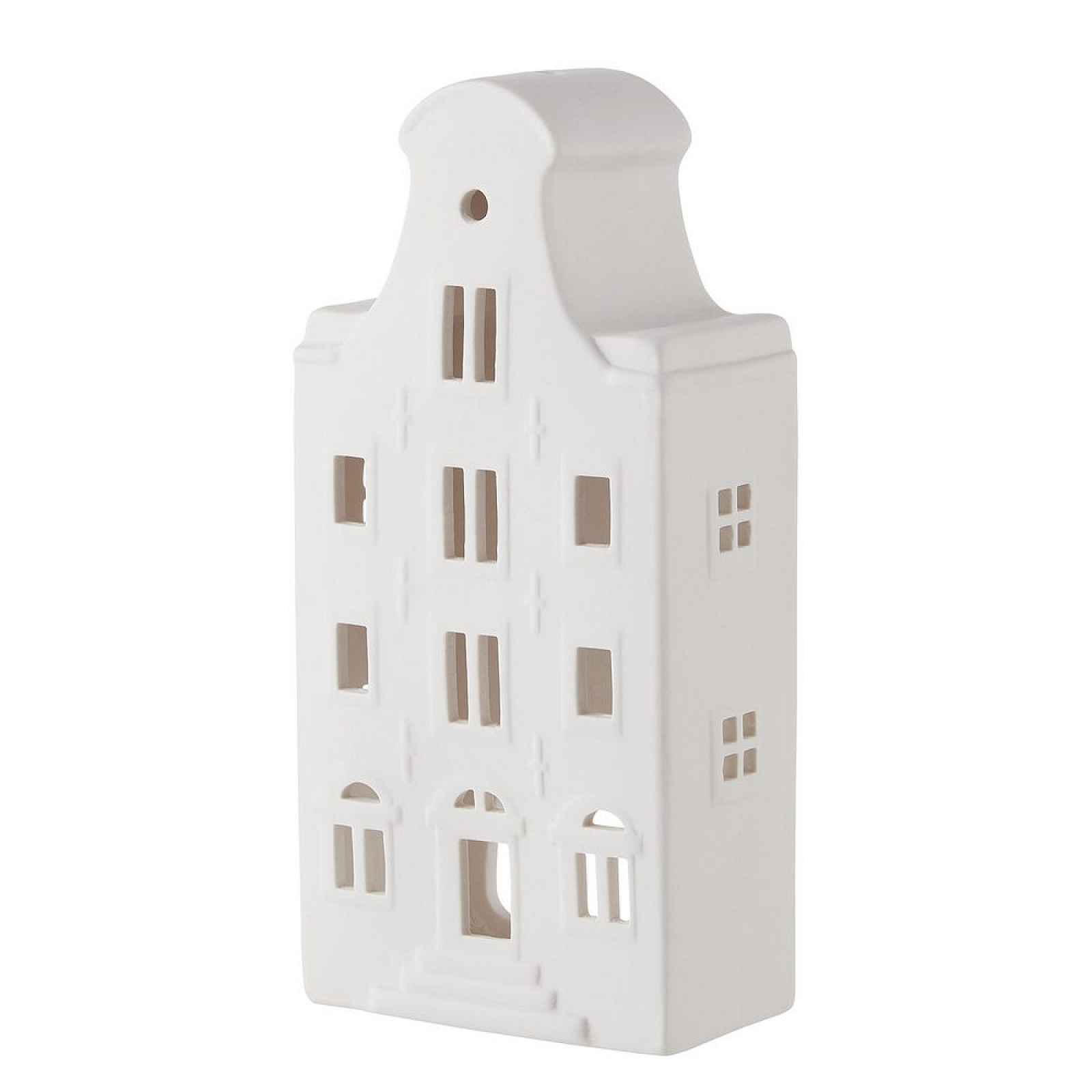 Dekorativní čajové svíčky jsou krásnou tradicí v zimním a vánočním období. Amsterdamský dům na čajové svíčky je vyroben z bílé keramiky a láskyplně navržen s mnoha okny, kterými se světlo atmosféricky třpytí. K dispozici další varianta.