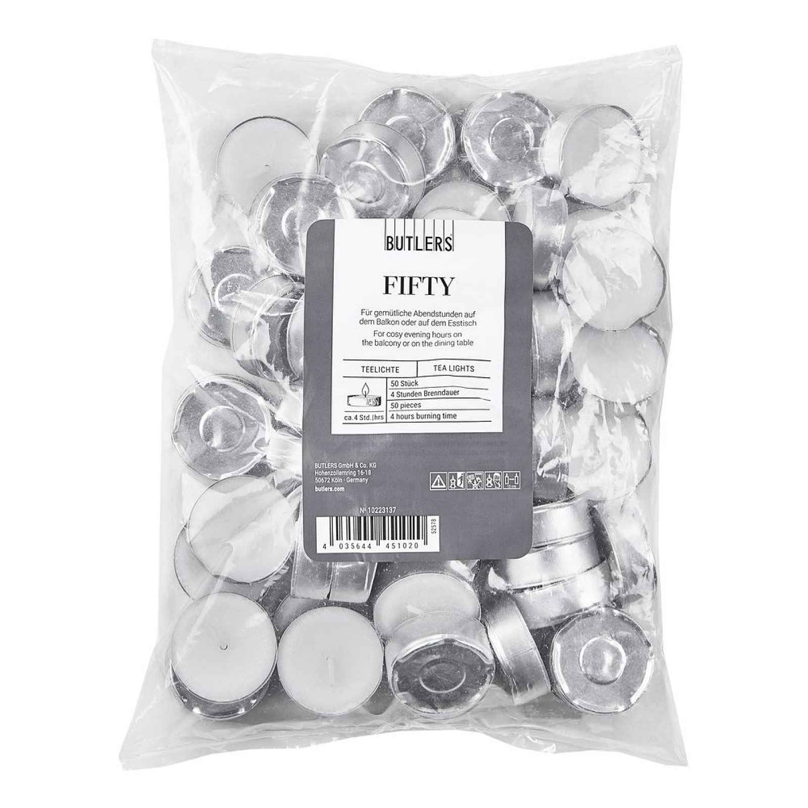 obzvláště dlouhá doba hoření 4 hodiny Praktické velké balení pro dlouhé a příjemné chvíle za svitu svíček FIFTY. Obzvláště dlouhá doba hoření 4 hodiny!