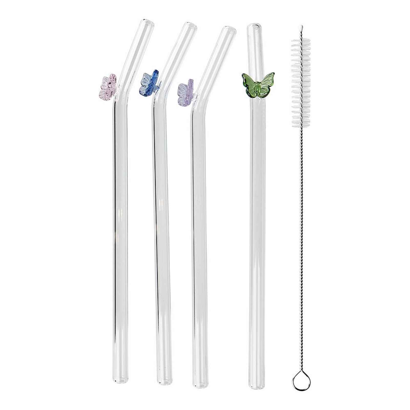 Butlers LONG DRINK Skleněná brčka s kartáčkem motýl set 5 ks