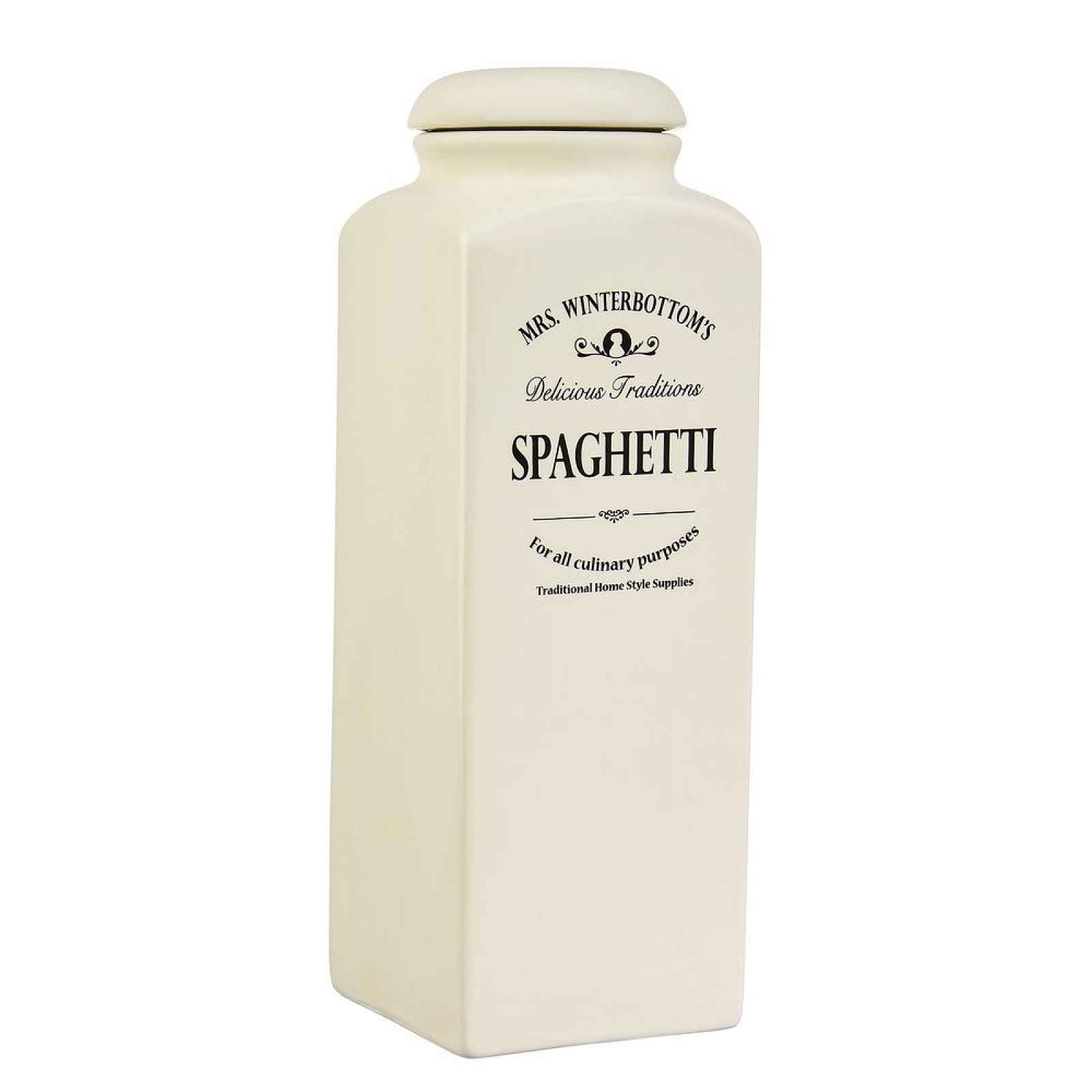 Rozměry: D 10 x Š 10 x V 31,5 cm Materiál: keramika Další informace: Nevhodné do myčky nádobí. Pořádek a systém. Žádná dobrá kuchyň se bez nádob na potraviny prostě neobejde. S dózou na špagety už Vám žádné katastrofy s roztrženými papírovými obaly nehrozí. Řada MRS. WINTERBOTTOMS myslí na každého a na všechno. Uchovat nebo servírovat na stůl se dá díky tradičním dózám, lahvím, hrncům, miskám, konvičkám prakticky cokoliv. Vyrobeno z kameniny exkluzivně pro Butlers, s typickým anglickým dekorem. A…
