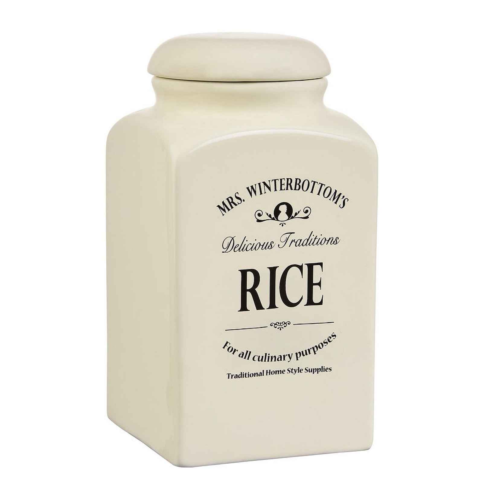 vhodné do myčky nádobí Pořádek a systém. Žádná dobrá kuchyň se bez nádob na potraviny prostě neobejde. S dózou na rýži už Vám žádné katastrofy s roztrženými papírovými obaly nehrozí. Řada MRS. WINTERBOTTOMS myslí na každého a na všechno. Uchovat nebo servírovat na stůl se dá díky tradičním dózám, lahvím, hrncům, miskám, konvičkám prakticky cokoliv. Vyrobeno z kameniny exkluzivně pro Butlers, s typickým anglickým dekorem. A samozřejmě k sobě všechno padne tak jako poklice na hrnec nebo nálevka do hrdla…