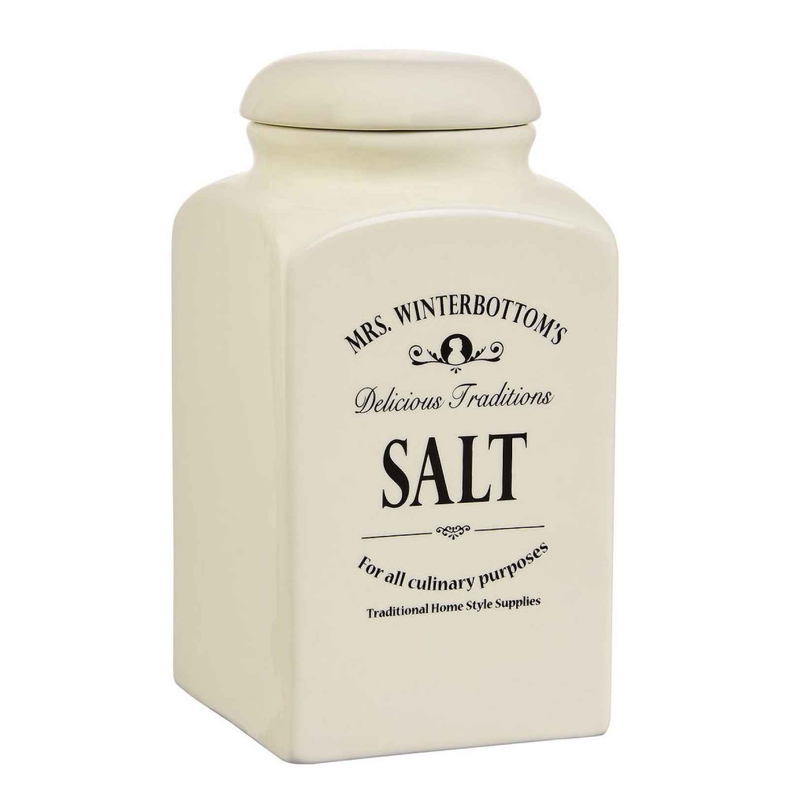 vhodné do myčky nádobí Pořádek a systém. Žádná dobrá kuchyň se bez nádob na potraviny prostě neobejde. S dózou na sůl už Vám žádné katastrofy s roztrženými papírovými obaly nehrozí. Řada MRS. WINTERBOTTOMS myslí na každého a na všechno. Uchovat nebo servírovat na stůl se dá díky tradičním dózám, lahvím, hrncům, miskám, konvičkám prakticky cokoliv. Vyrobeno z kameniny exkluzivně pro Butlers, s typickým anglickým dekorem. A samozřejmě k sobě všechno padne tak jako poklice na hrnec nebo nálevka do hrdla lahve.