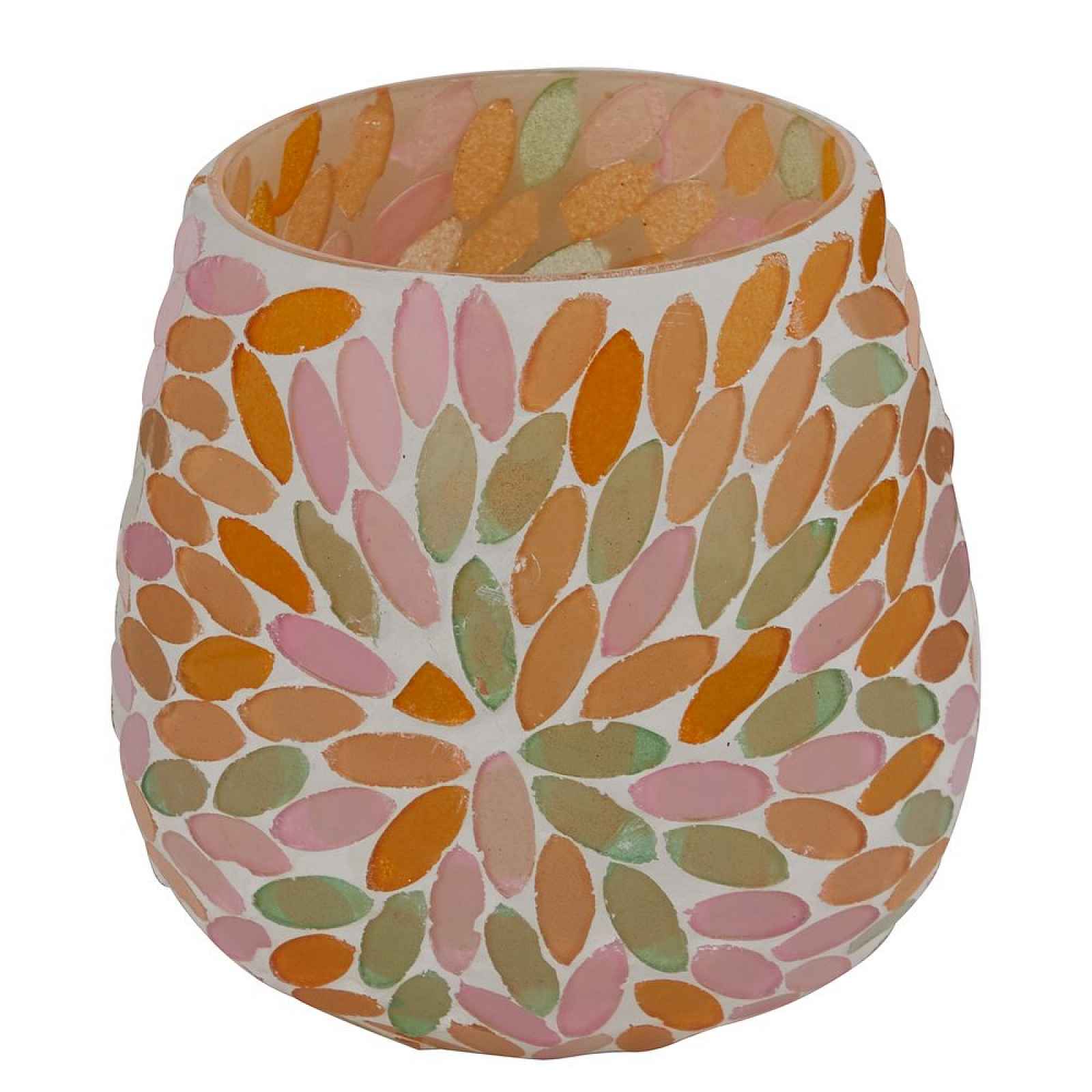 Rozměry: V 10 cm Materiál: sklo Hra světel a barev: Tento svícen SHIMMER & SHINE s mozaikovým vzorem a pastelovými odstíny vytváří jedinečnou atmosféru. Jeho dekorativní povrch jemně rozptyluje teplé světlo svíčky, díky čemuž je ideální volbou pro slavnostně prostřený stůl i útulný koutek.
