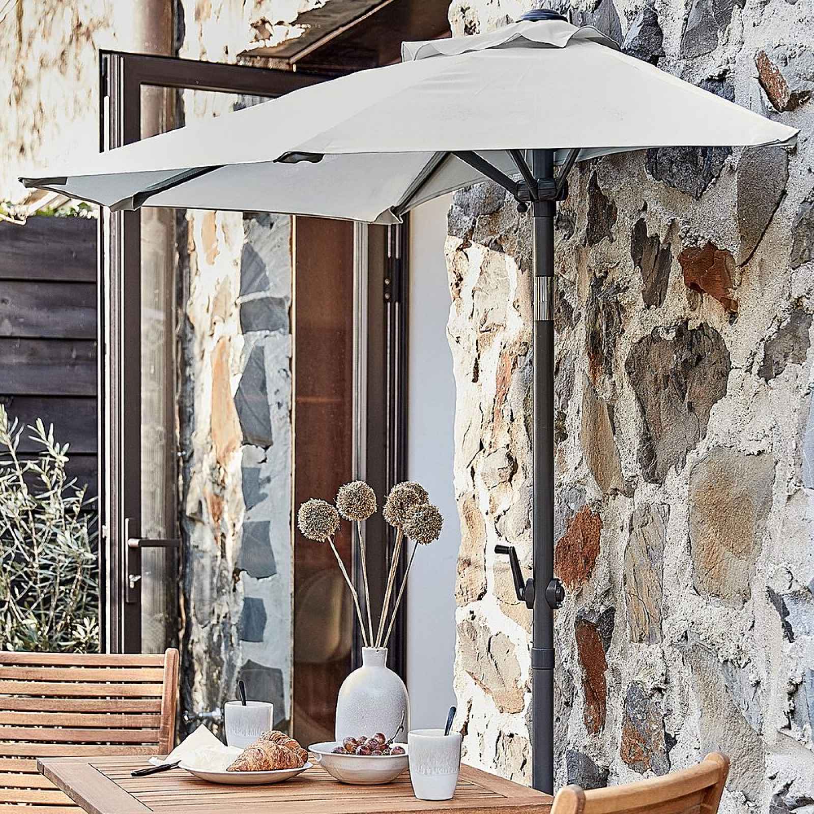 UV odolnost 801 Jakmile se slunce vyhoupne vysoko na nebe, rozložte vysoce kvalitní slunečník SIESTA se světle šedým polyesterovým potahem (UV odolnost 801). Jednoduše nakloňte, bude-li zapotřebí, a dopřejte si svou malou siestu plnou odpočinku a stínu.