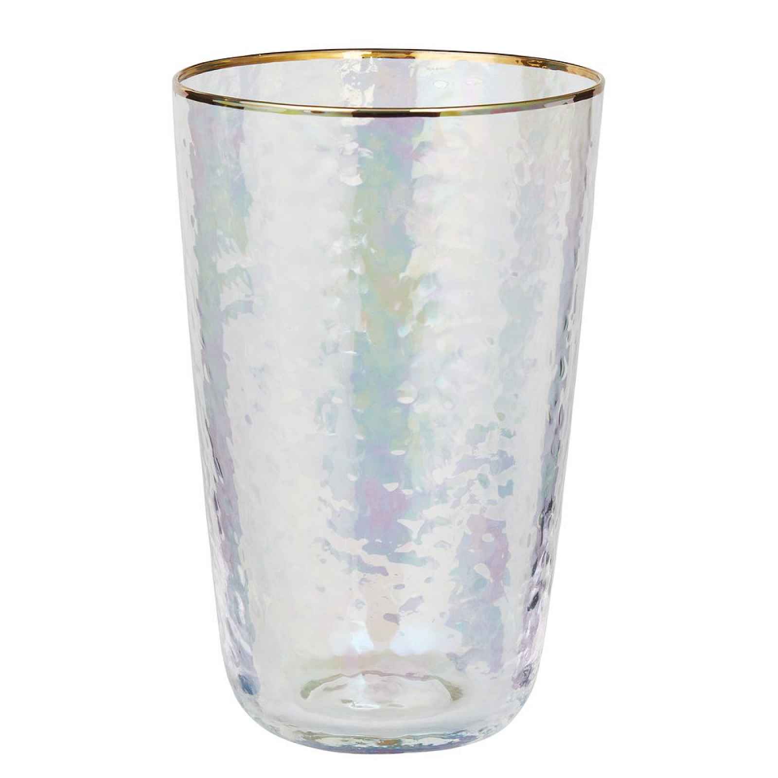Rozměry: průměr 9 x V 14 cm Objem: 530 ml Materiál: sklo Další informace: Vhodné do myčky nádobí. Nevhodné do mikrovlnné trouby. Pozvedněte své stolování na novou úroveň elegance s našimi sklenicemi SMERALDA. Tyto jedinečné sklenice zaujmou zlatým okrajem, který dodává sklenicím luxusní vzhled a zároveň je činí dokonalými pro slavnostní příležitosti i každodenní radosti. Sklenice SMERALDA jsou k dispozici v několika verzích, včetně skleniček na víno, šampaňské, gin a další nápoje.