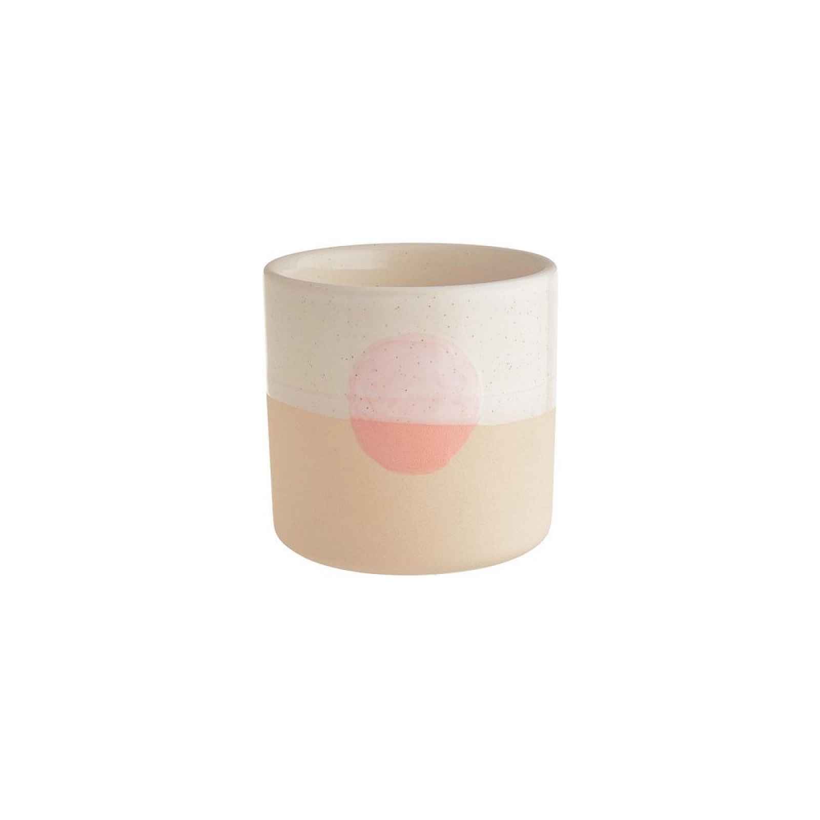Na dekorativním kameninovém květináči SUNSET v béžové barvě vychází slunce v pastelově oranžové barvě. Takto krásně začíná každý den pro Vás a Váš domov. Dostupné v jiných velikostech.