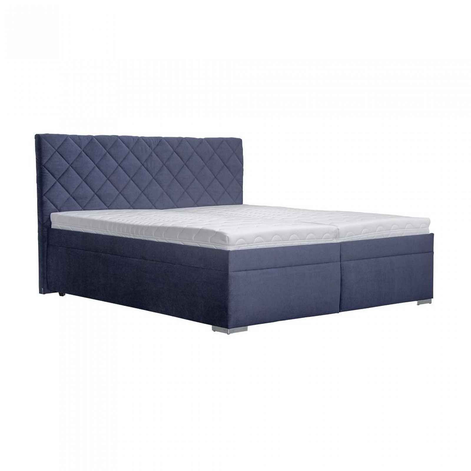 Dvoumístná čalouněná postel KLARA se vyznačuje elegantním vzhledem a velkým komfortem. Textilní potah rámu a záhlaví se snadno udržuje, a také zaujme elegantní tmavě modrou barvou. Pro ještě hezčí vzhled je čelo postele zdobené károvaným vzhledem. Dvoudílný úložný box pod dvěma lůžky navíc nabízí dostatek prostoru pro přikrývky, polštáře a ložní prádlo. Přibližně 180 x 200 cm velká plocha na ležení vás zve na příjemnou relaxaci a spánek. Díky tomu je tato čalouněná postel oázou pohody. Nejdůležitější informace: Barva: tmavěmodrá Materiál potahu: mikrovlákno Max. nosnost v kg: 130 Lmelový rošt s pohyblivými lamelami Polstrované čelo postele Ležicí plocha přibližně v cm (Š x D): 180 x 200 Výška ležení cca v cm: 44 Celková délka cca v cm: 213 Celková šířka cca v cm: 191 Celková výška v cm: 117 Úložný prostor