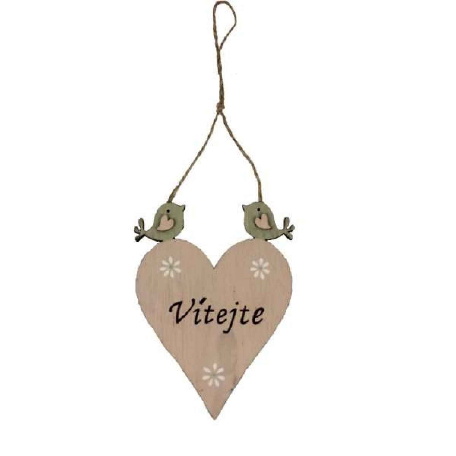 Cedule srdce Vítejte dřevo přírodní 13,5cm
