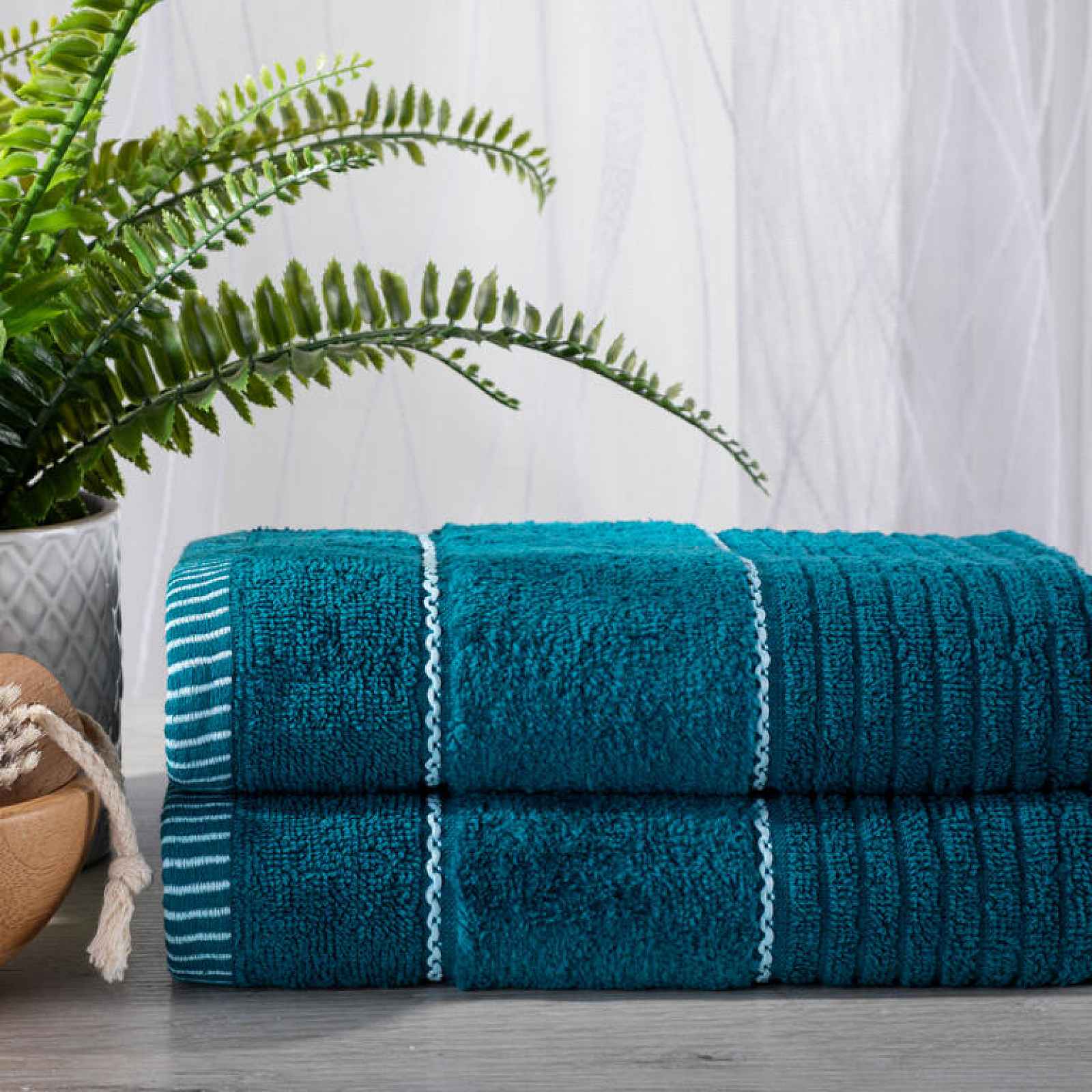 Bavlněné ručníky z kolekce TEO v atraktivním temně tyrkysovém odstínu se střiženou bordurou z oblíbeného smyčkového froté jsou velmi příjemné na omak a ohleduplné k vaší pokožce. Vysoká gramáž dodává ručníkům výjimečnou měkkost a dlouhodobou životnost. Vyznačují se výbornou savostí a antistatickými vlastnostmi. Certifikáty Öko-Tex Standard 100 A Öko-Tex Made in Green zaručují nulový obsah škodlivých látek i zdravé pracovní procesy při výrobě. Před prvním použitím vyperte samostatně na doporučenou teplotu. Nepoužívejte aviváž, která snižuje životnost. Suště v sušičce pouze na nejnižší teplotu. V nabídce také osuška ve stejném provedení pro dokonale sladěnou koupelnu. Materiál: 92% bavlna, 8% polyester