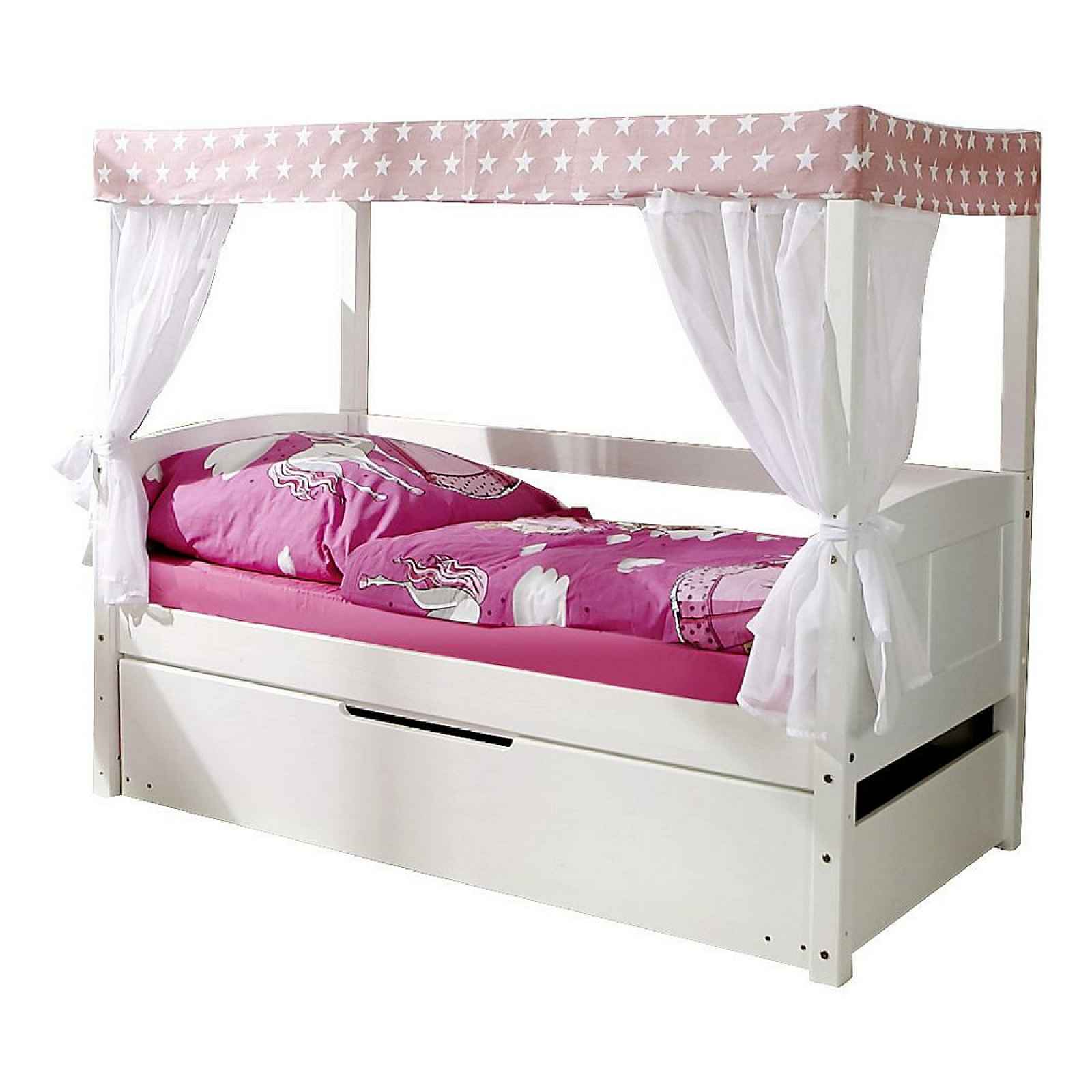 Detská Postel S Nebesy Lino Mini Závěs Růžovo-Bílý