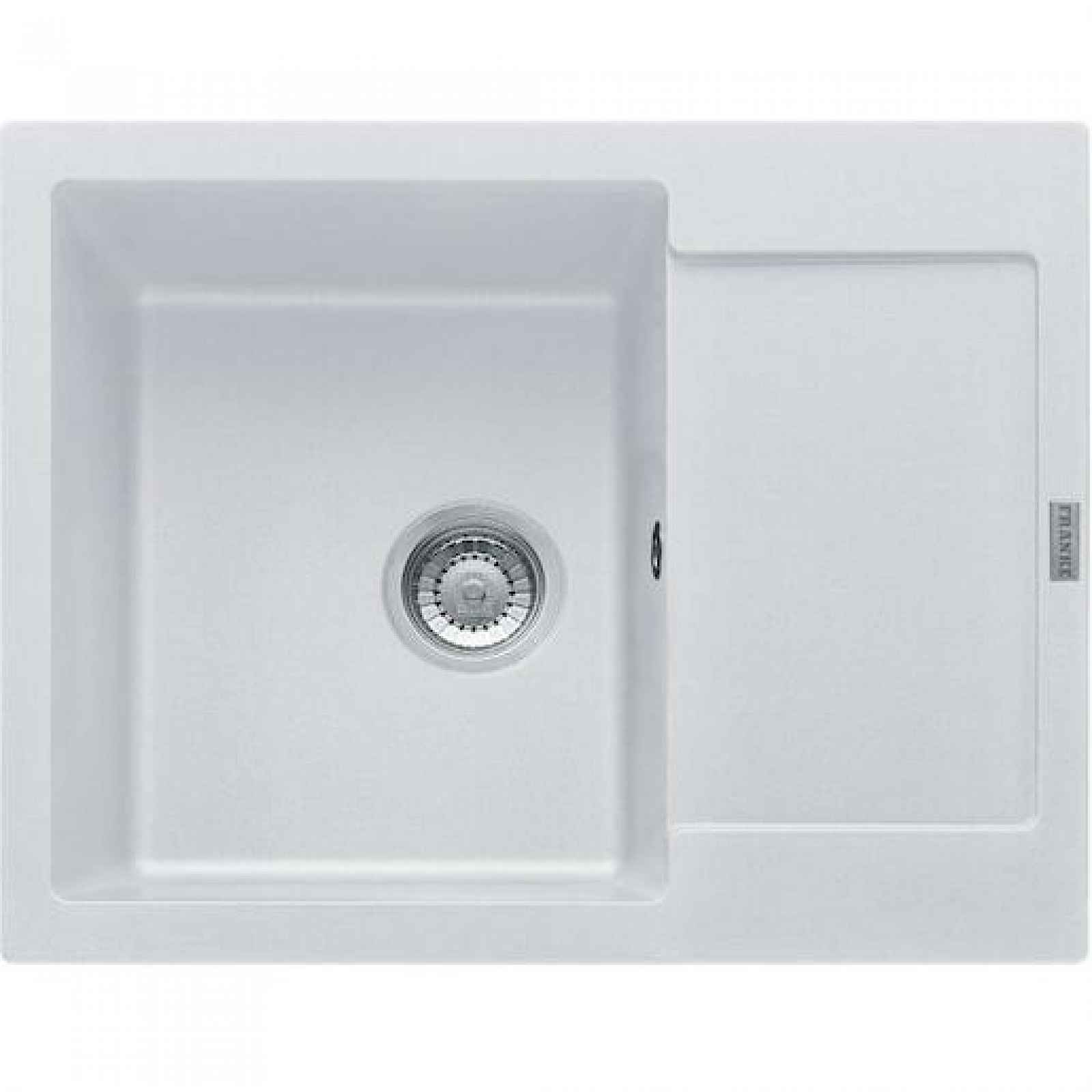 Granitový jednodřez s odkapávačem v barvě bílý led s montáží na pracovní desku o rozměru 62x50 cm a hloubkou 20 cm. Vhodný pro montáž do skříňky o šířce 45 cm.