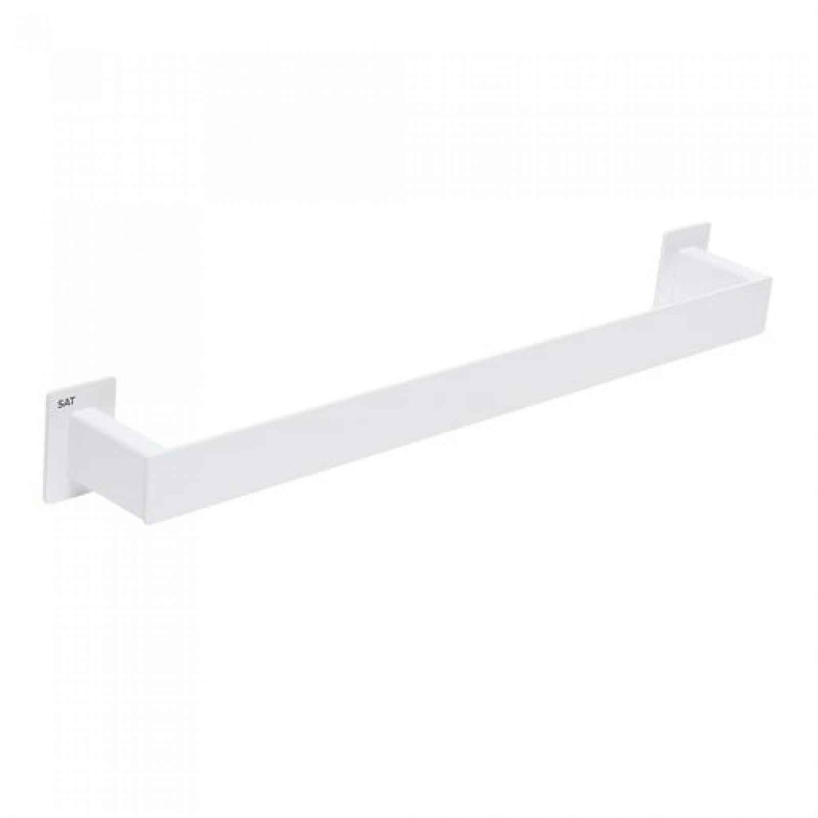 Držák ručníků v barevném provedení bílá Šířka tohoto koupelnového doplňku od značky SAT je 49 cm a je vyroben z materiálu nerez. Montáž bez nutnosti vrtání, pouze lepením.