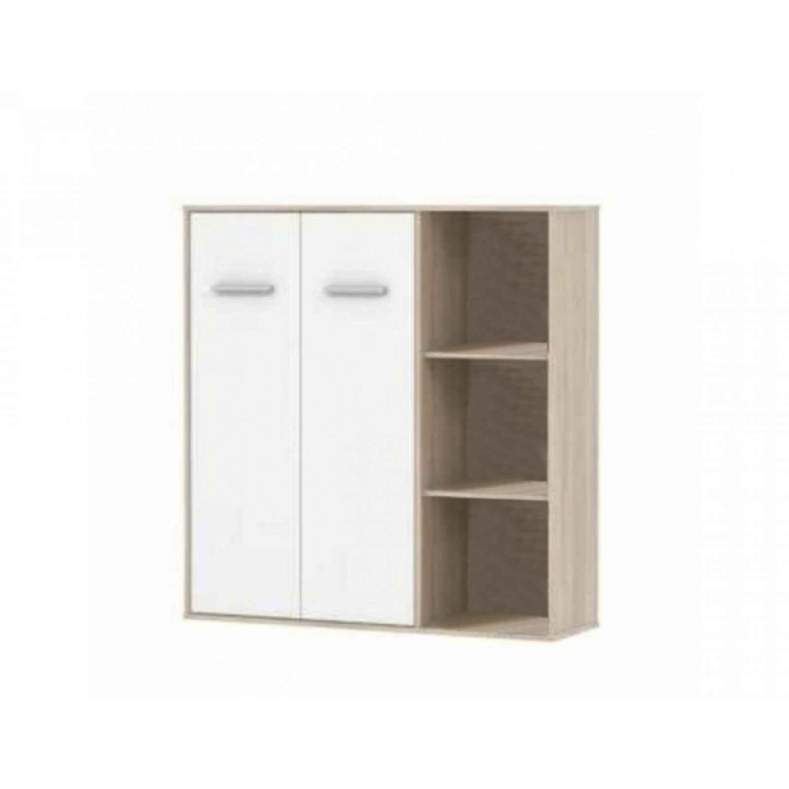Dvoudvéřová skříňka Maurus z kvalitního lamina o síle 16mm v dezénu dub sonoma světlá / bílá. Skříňku ze sektorové sestavy na zařízení pracoven a studentských pokojů dále kombinujte se skříní či PC stolem (viz související produkty). Komponenty prodáváme jednotlivě. Výrobek dodáváme v demontu. Rozměry: - šířka 110,9 cm - hloubka 33,5 cm - výška 109,6 cm