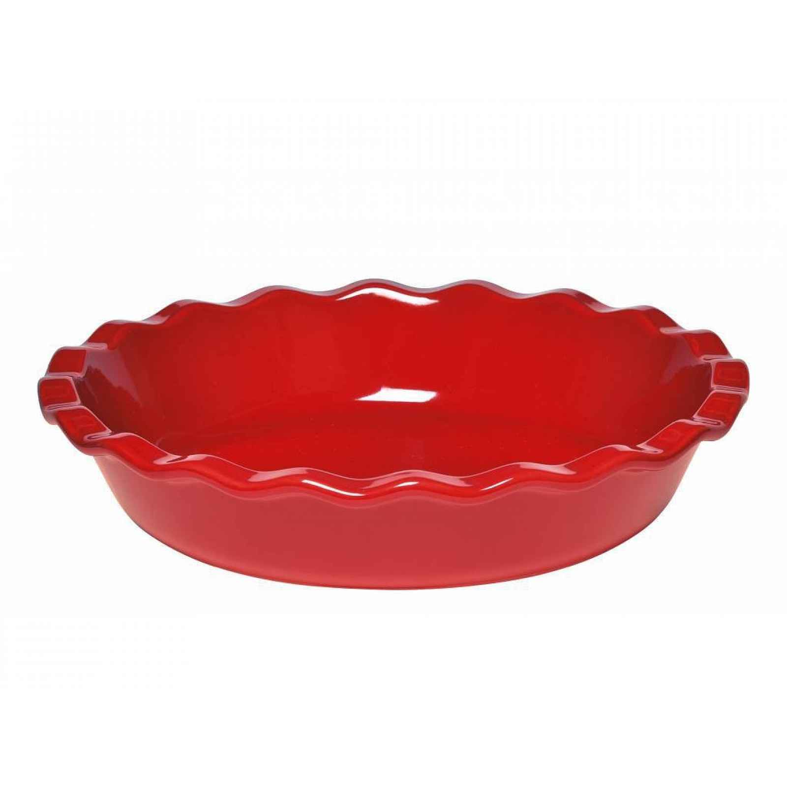 Keramická koláčová forma od francouzského výrobce Emile Henry, barva granátová (červená), průměr 26 cm, výška 5 cm a objem 1,4 l.