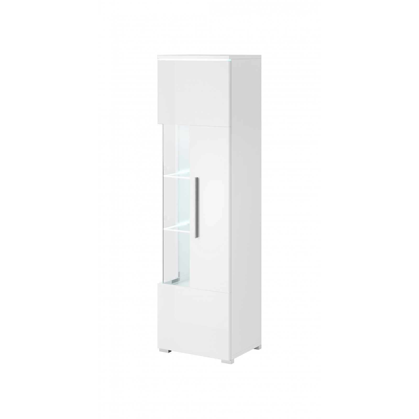 VitrínaProvedení: pravá Barva: bílá/bílý lesk Materiál: laminoRozměry (šxhxv): 45 x 35 x 160 cm - 4 policeDodáváno v demontu