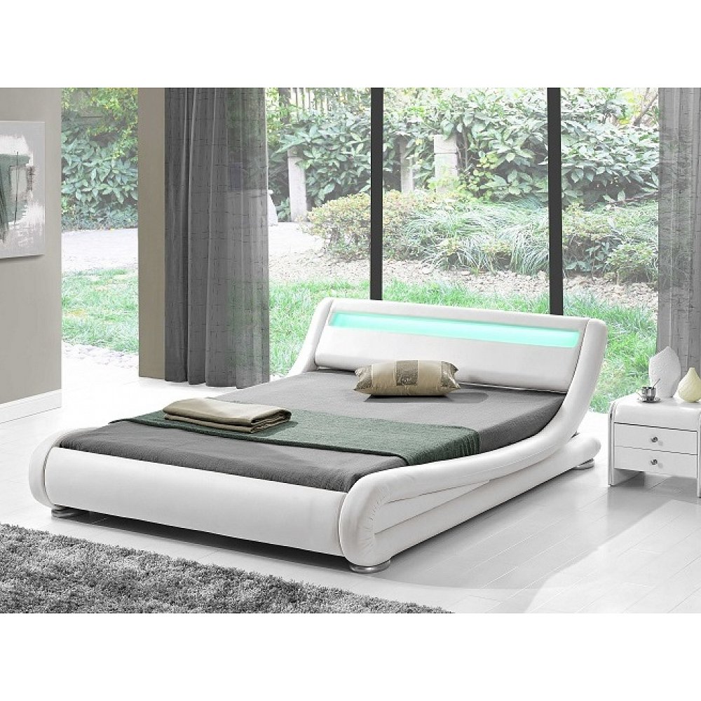 Čalouněná postel s roštem a LED osvětlením 160x200 cm, bílá V ceně postele je lamelový rošt, RGB LED osvětlení (v čele postele), které mění v časových intervalech barvy. Matraci je nutno doobjednat, vhodný rozměr matrace 160x200 cm. Materiál: ekokůže Barva: bílá Rozměry (šxhxv): 182 x 224 x 68 cm Výška po rošt: 13,5 cm Dodání v demontu. Záruka 24 měsíců.