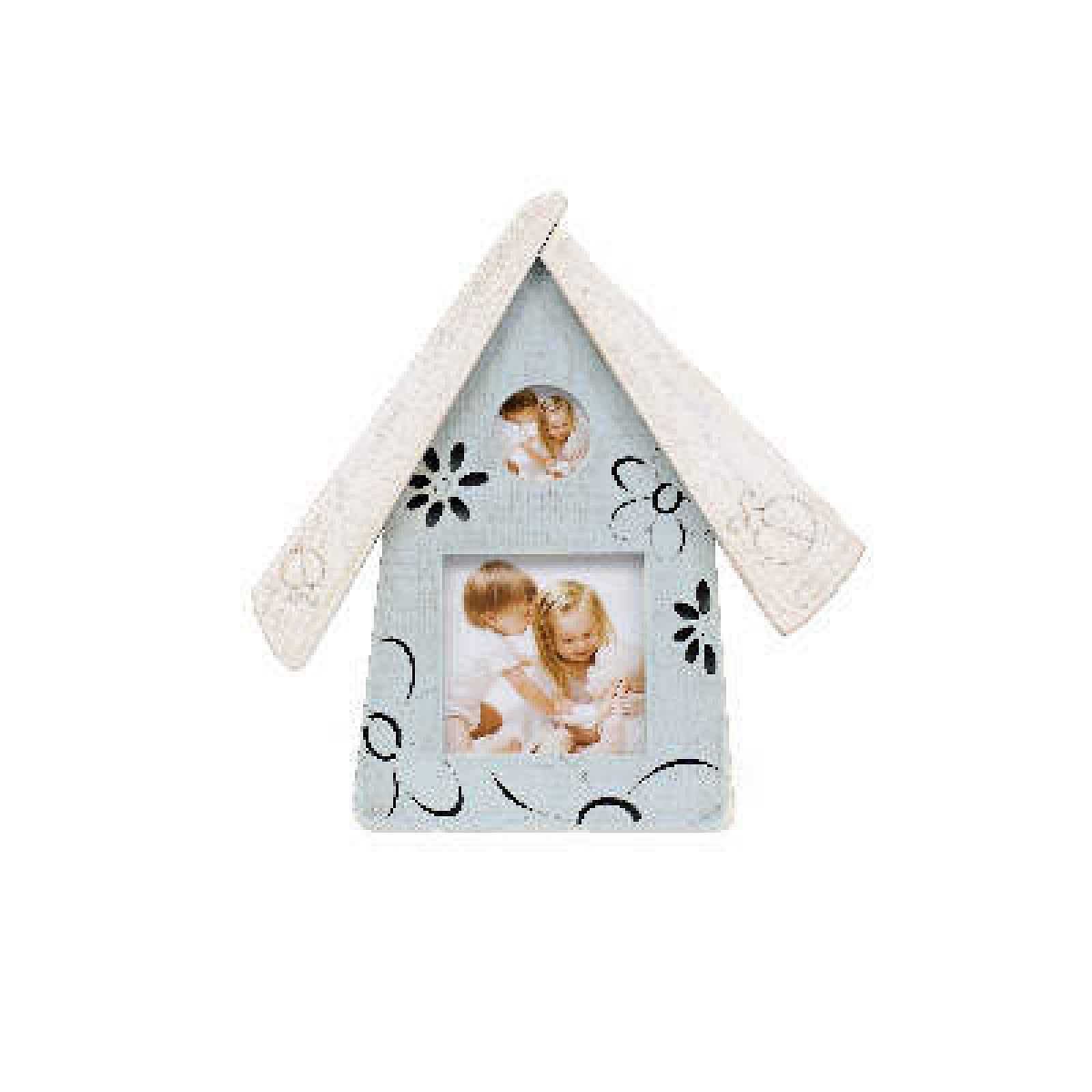 Fotorámeček tvar dům dekor květy 2 foto dřevo/sklo 20cm