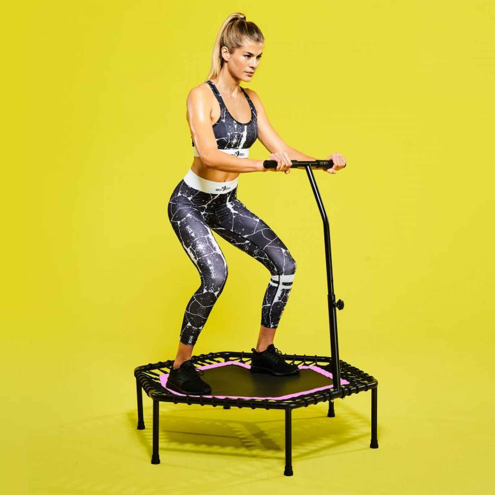 Technické údaje: celkový průměr: 100 cm průměr skákací plochy: 77 cm výška: 30 - 144 cm 6 výškově nastavitelných držadel: 87-114 cm 6 protiskluzových nožiček závěsný systém se 48 gumovými šňůrami Obsah balení: 1 x trampolína