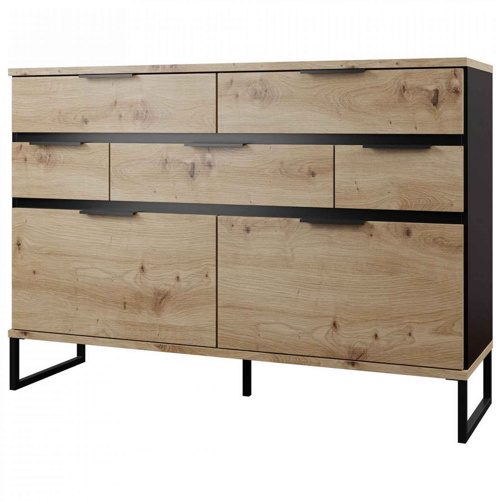ŠIROKÁ KOMODA, černá, dub artisan, 134/95/40 cm - **LAMINOVANÁ DESKA - **DUB ARTISAN, ČERNÁ - **NOHY A ÚCHYTY CERNÝ KOV