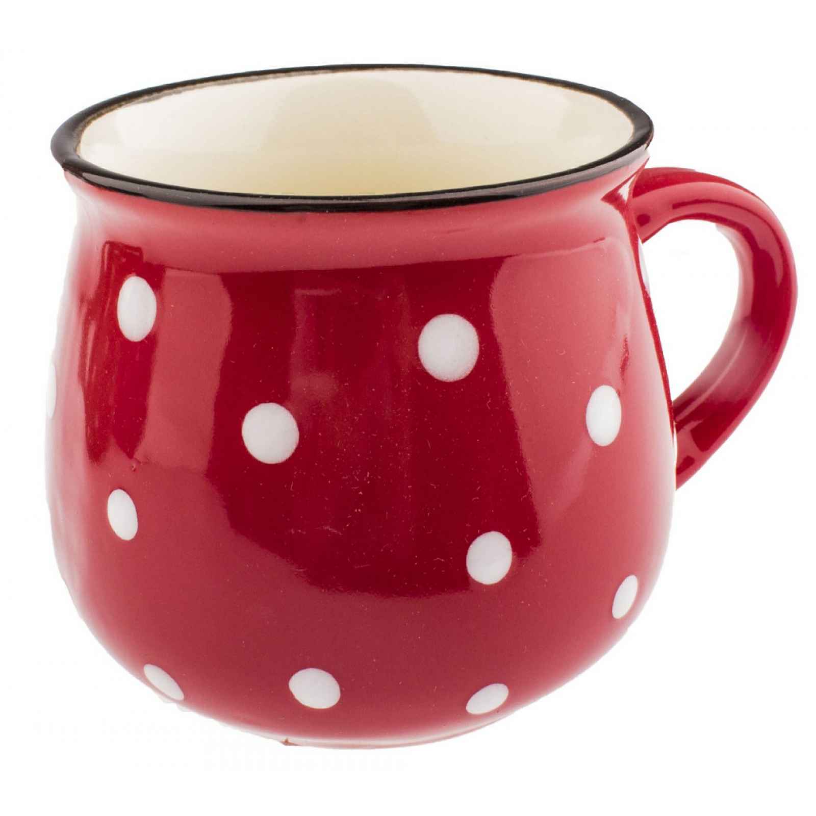 Keramický buclatý červený hrnek s bílými puntíky potěší každého, kdo miluje venkovský styl bydlení. Chalupářský hrneček neboli také krajáč o objemu 230 ml je vhodný na studené či teplé nápoje, třeba i na mléko. - materiál: keramika - barva: červená/bílá - vzor: tečky - objem: 230 ml - průměr: 7 cm - výška: 7,8 cm - celková šířka i s uchem: 11,7 cm - styl: venkovský - ideální na čaj, kávu, mléko a jiné nápoje - hodí se na chalupu - vhodné také jako dárek