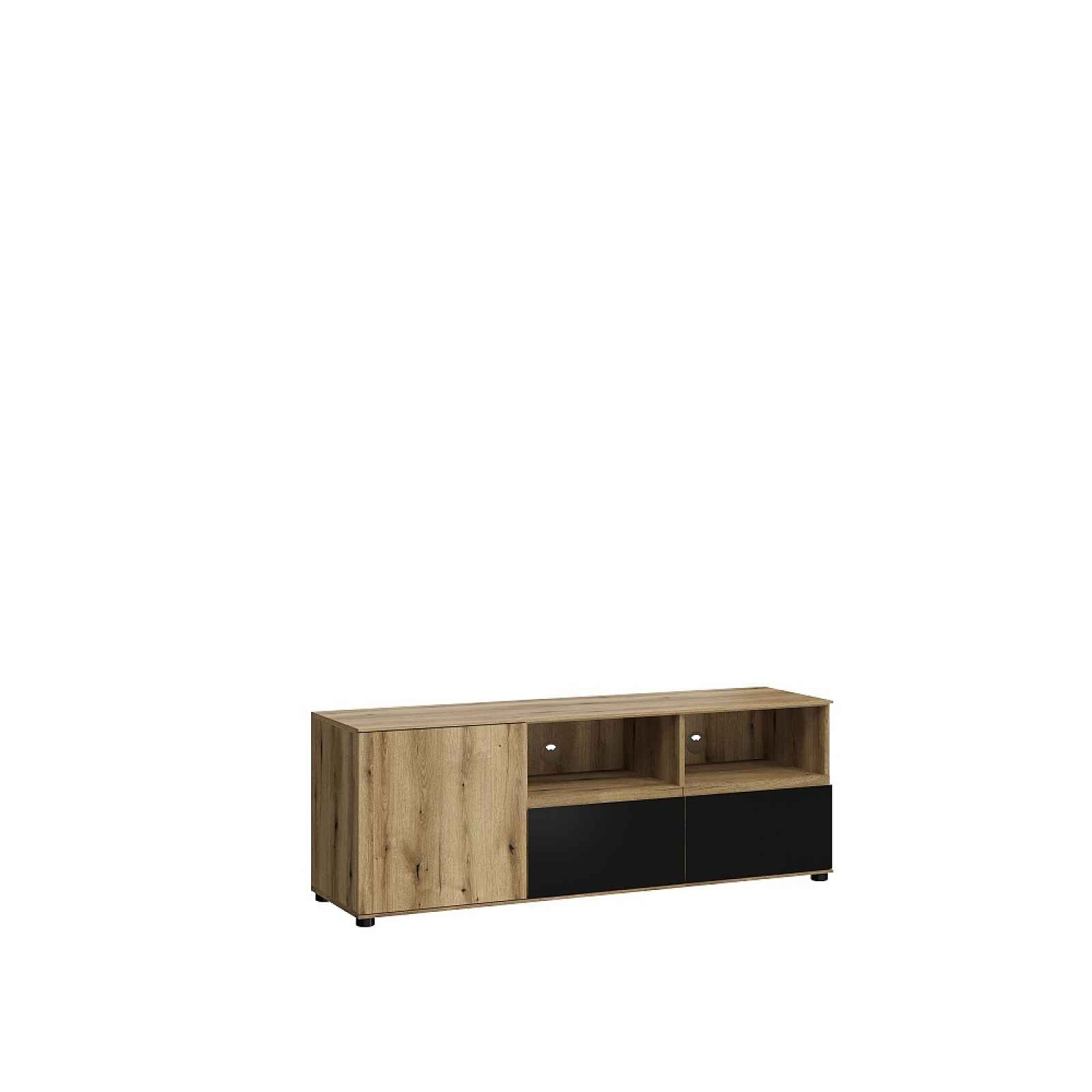 Televizní stolek s bezúchytovým systémem, šuplíky s plnovýsuvem a panty s mechanismem tichého zavírání.Barva: dub evoke/sametová černáMateriál: laminoRozměry (šxvxh): 150 x 54 x 40 cmDodáváno v demontu.