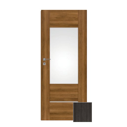 Moderní interiérové dveře, které budou ozdobou každého interiéru. Rámová konstrukce z MDF s kvalitní fólií v žádaném a velmi pěkném. Výplň je poskládána z panelů z MDF ve stejném dekoru a bílého matného skla tl. 4 mm. Zasklení bez zasklívacích rámečků působí velice estetickým dojmem. Dveře lze osadit jak do stávající ocelové zárubně v české normě nebo do obložkové zárubně. Dveře mají dozický zámek na klíč (rozteč 72 mm).