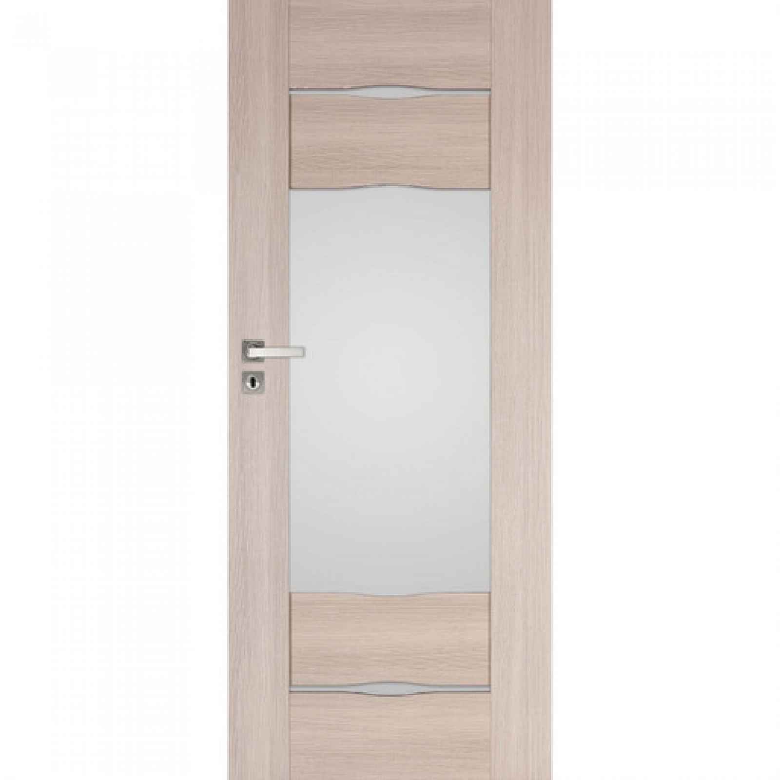 Interiérové rámové dveře Verano 5 s obdelným a horizontálním prosklením s dekorativním rozšířením uprostřed. Dveře mají rám z MDF desky.