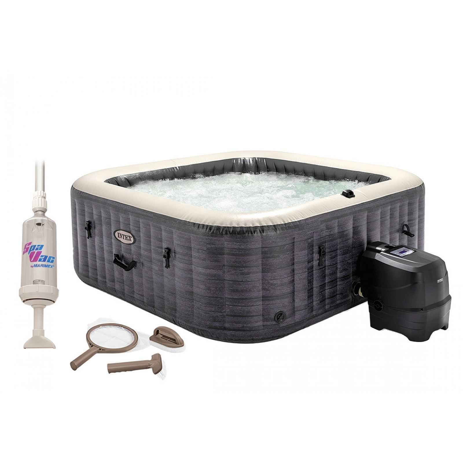 Vířivý bazén Greystone Deluxe Bubble Spa 6 disponuje novou funkcí WIFI pro spárování a ovládání vířivky pomocí mobilního telefonu. Dalším benefitem je systémem HWT na změkčování vody. Díky jejím rozměrům je vhodná až pro šest osob. Vířivka má 170 vysoce výkonných bublinkových trysek, které masáží povzbudí každý sval. Vana je vyrobena z vysoce kvalitního 3 vrstvého PVC. Disponuje konstrukcí 55 FIBER-TECH BEAMS (silná polyesterová vlákna). Ovládání vířivky pomocí aplikace v mobilu Vířivka má zabudovaný wi-fi modul. díky jeho propojení s mobilní aplikací z Google play / App store si můžete všechny funkce a nastavení ovládat na dálku odkudkoliv. Dokonalou relaxační lázeň tak stihnete připravit ještě před Vaším příchodem. Systém HWT na změkčování vod Unikátní systém HWT (Hard water Treatment System) změkčuje vodu, která je tak příjemnější a šetrnější k vaší pokožce. Elektronická jednotka vytváří střídavé magnetické pole, které vytváří elektrické pole ve vodě a zabraňuje tak vzniku vodního kamene v hadicích. VÝHODY: 1. Zabraňuje dalšímu vytváření vodního kamene 2. Voda je měkčí 3. Zmírňuje vliv vodního kamene na kůži a oděvy Díky samoinstalačnímu mechanismu je instalace vířivé vany rychlá a jednoduchá. PureSpa stačí zapojit do zásuvky a sama se během okamžiku nafoukne. Systém SWT (salt water) na slanou vodu Vířivka je vybavena vestavěným solinátorem, který nahrazuje chlor jednoduchou nejodizovanou solí, která je šetrnější k lidské pokožce. Parametry vířivky Počet osob: 6 dospělých osob Vnitřní průměr: 188 cm Vnější průměr: 239 cm (po naplnění vodou, tolerance ± 5%) Výška: 71 cm Objem vody: 1098 l Trysky: 170 vzduchových trysek Teplotní rozpětí ohřevu: 10°- 40°C Příkon ohřevu vody: 2 200 W Váha bez vody / s vodou: 46 kg / 1144 kg Příkon perličkové masáže: 800 W Příkon HWS: 20 W Napájení: 220-240V / 50Hz Rychlost ohřevu vody: 1,5 – 2,5°C /hod Cirkulační čerpadlo: 1 741 l/hod Vlastnosti mobilní vířivky Bubble Spa Materiál vany: 3 vrstvé PVC Konstrukce vany: 55 FIBER-TECH BEAMS (silná polyesterová vlákna) Tloušťka materiálu: 0,84 mm Příslušenství SPA (obsaženo v balení vířivky) Vířivý bazén termoizolační kryt ohřev/filtrační systém/pumpa trysek 2x filtrační vložka izolační podložka hadice pro nafukování přepravní taška tester na volný chlor, pH a celkovou zásaditost LED osvětlení (bez baterií) 2x opěrka hlavy Další příslušenství dodávané v sadě s vířivkou: Bezdrátový plovoucí reproduktor Bazénový vysavač Spa Vac Údržbový set pro vířivky Marimex Spa sada Oxi (OXI 0,5 kg, Odpěňovač 0,6 l, Aktivátor 0,6 l) Připojení dalšího příslušenství k vířivce nejde připojit solární ohřev, chlorinátor ani písková filtrace. Výhody vířivek Marimex Zlatá střední cesta Kombinace klasických nafukovacích bazénů a luxusních vířivek. Stejně jako vestavěné vířivky disponuje výkonnými tryskami, ale pořizovací cena je nižší. Rychlé zprovoznění Stačí najít rovné podloží, nafouknout vířivku elektrickou pumpou a napustit vodu. Montáž vířivky zvládnete do deseti minut. Přemístitelné Nafukovací vířivku lze používat jak v interiéru, tak i v exteriéru. V létě ji můžete umístit na zahradu, v zimě do domácnosti. Další výhody vířivek Marimex