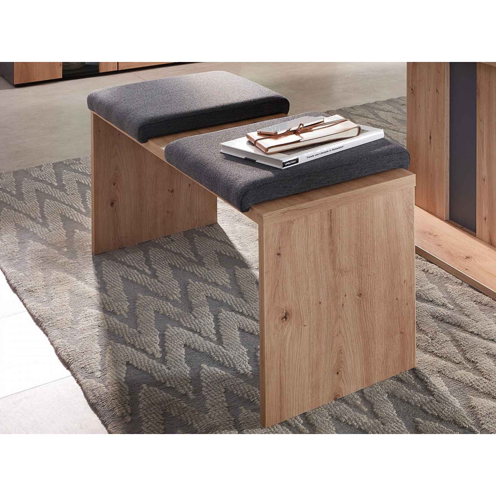 Jídelní lavice z programu Memphis – moderní nábytek v kontrastní kombinaci matný grafit s útulným dřevodekorem dub artisan. Jídelní lavice se 2 polstry z programu Memphis – moderní nábytek je vyroben v kontrastní kombinaci matný grafit s útulným dřevodekorem dub artisan. Stylová a praktická lavice o šířce 130 cm je vybavena sedacím polštářem pro pohodlné sezení. - jídelní lavice se 2 polstry z programu Memphis - materiál: laminová dřevotříska 16 mm/22 mm, MDF 18 mm - dekor: grafit mat/dub artisan - moderní, elegantní styl - šířka: 130 cm - 2 x podsedák: antracitová látka - max. nosnost: 160 kg (nosnost místo k sezení cca 80 kg) - vyrobeno v EU - dodáváno v demontu