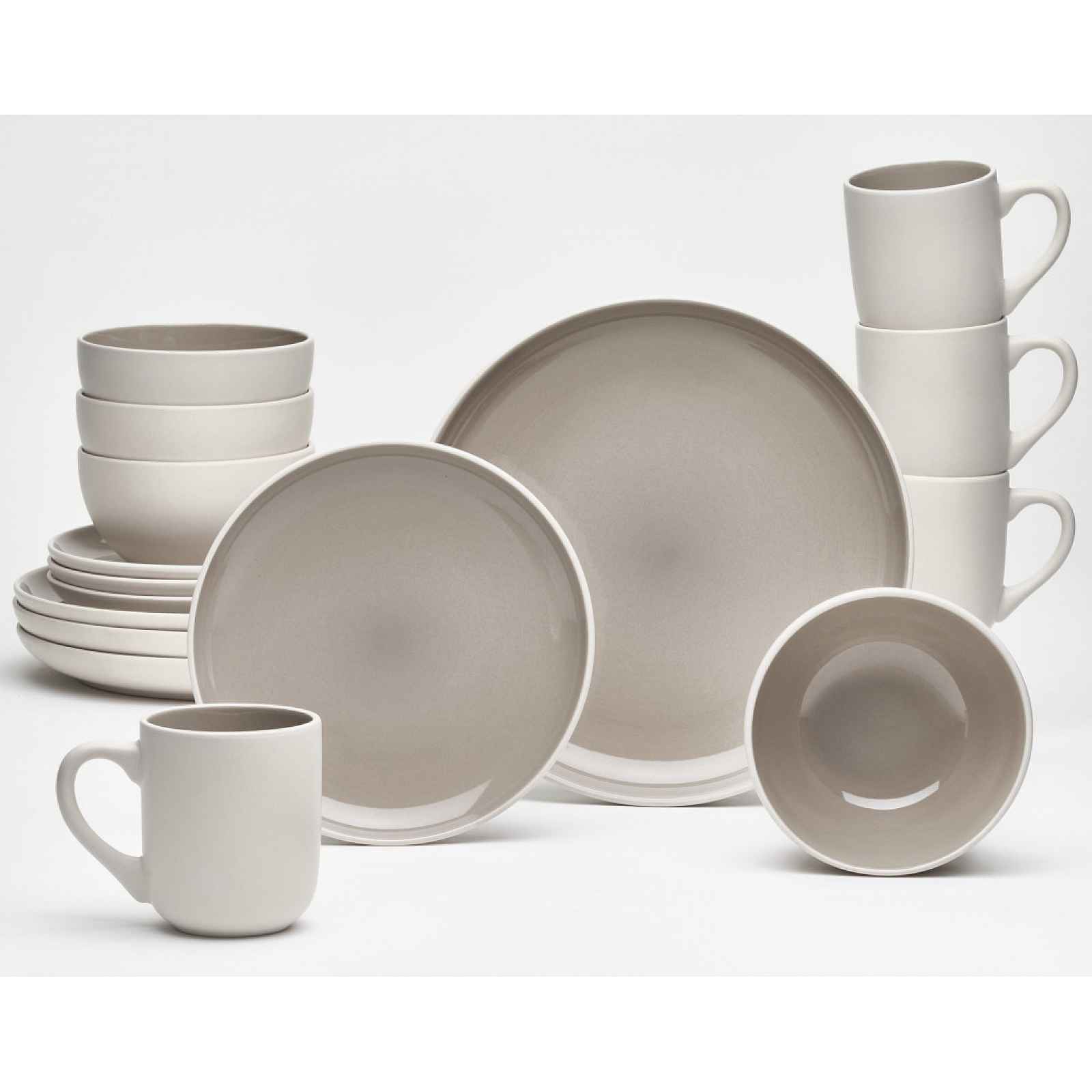 16dílná jídelní sada pro stylové a každodenní stolování pro 4 osoby v taupe barvě. 16dílný jídelní servis obsahuje vše potřebné pro každodenní stolování i elegantní prostírání. Kameninové nádobí v hřejivé taupe matné barvě zaujme svým nadčasovým designem a funkčností. Jídelní sada je ideální pro snídani, oběd, večeři nebo odpolední kávu s dezertem a pohodlně poslouží 4 osobám. - 16dílná jídelní sada - až pro 4 osoby - materiál: kamenina - matně béžový povrch, lesklý taupe vnitřek - tvar: zakulacený - lze použít v mikrovlnné troubě - lze mýt v myčce nádobí - kvalitní zpracování - moderní a elegantní zároveň - dodáváno v kartonové krabici Sada jídelního servisu obsahuje celkem 16 dílů: - 4 x hrnek, objem 360 ml - 4 x talíř mělký (dezertní), průměr 20 cm - 4 x talíř mělký (jídelní), průměr 27 cm - 4 x miska na cereálie, průměr 14 cm, objem 660 ml
