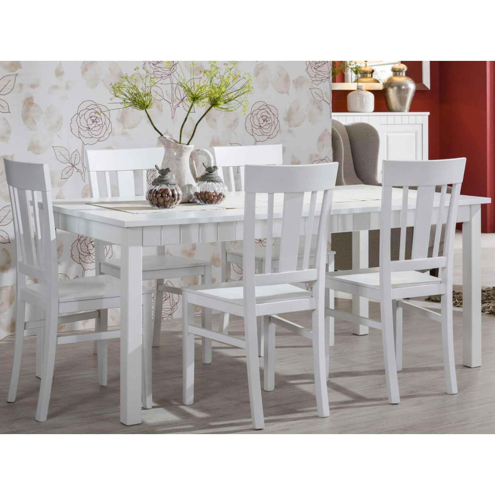 Jídelní stůl z kolekce Atik o rozměru 160x90 cm ve venkovském stylu si zamilujete, vyroben v celobílém provedení. Okrasné frézované prvky, jedinečný vzhled i precizní zpracování řadí tento model mezi nejoblíbenější. - jídelní stůl z kolekce Atik - materiál: laminovaná dřevotříska, MDF, kov - dekor: bílý mat - silné nohy (60x55 mm) - plocha jídelní desky: 160x90 cm - síla jídelní desky: 22 mm - boční lišty - okrasné svislé frézování - jedinečný masivní vzhled - kvalitní zpracování - vyrobeno na Slovensku - dodáváno v demontu