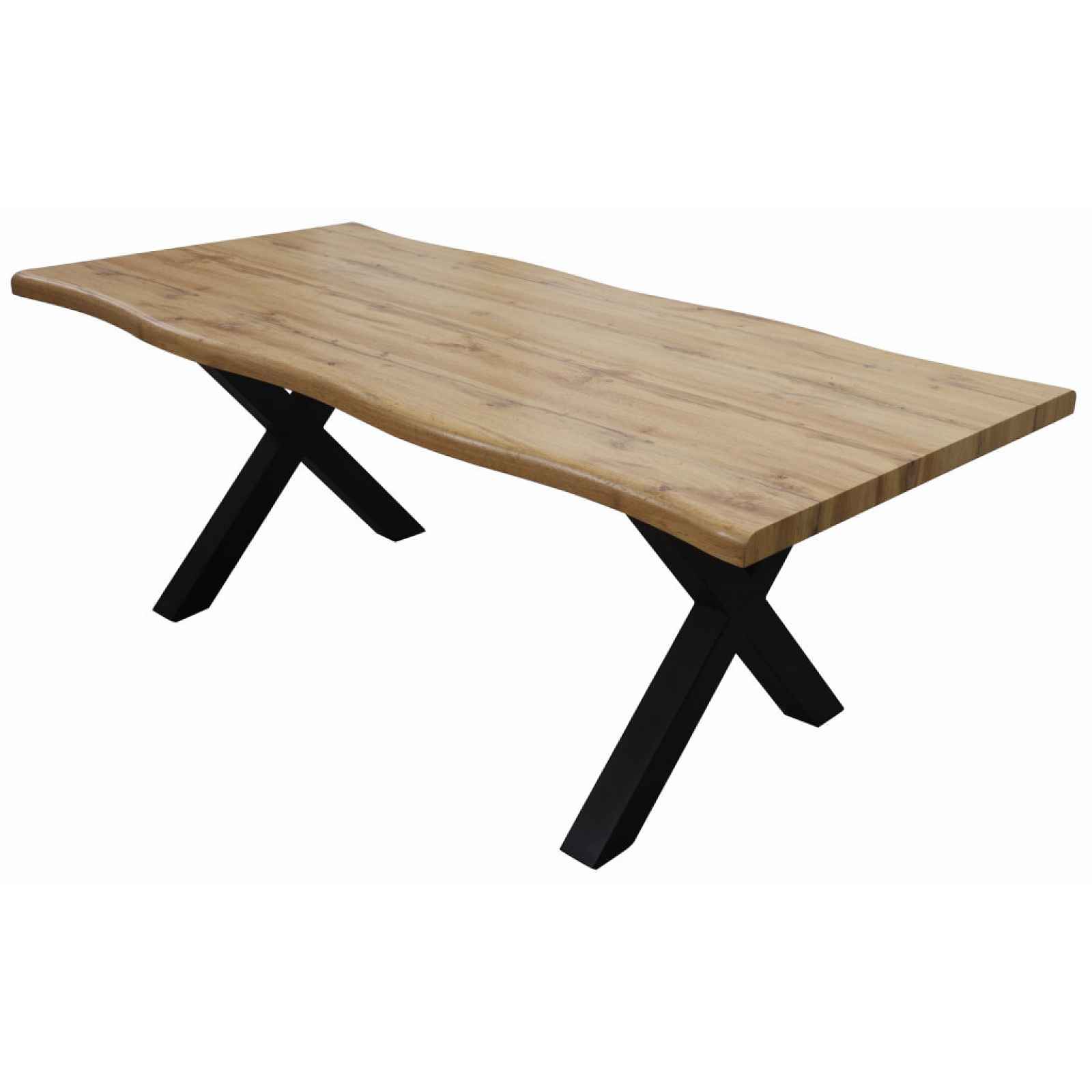 Obdélný jídelní stůl zaujme optikou masivního dřeva s opracovanými hranami do zaoblených tvarů - stolek tak působí jako kus opravdového masivního dřeva. Obdélný jídelní stůl o velikosti 160x90 cm zaujme optikou masivního dřeva s opracovanými hranami do zaoblených tvarů - stůl tak působí jako kus opravdového masivního dřeva. Deska jídelního stolu je vyrobena v útulném dřevodekoru divoký dub. Černá kovová podnož ve tvaru X zajišťuje skvělou stabilitu. - materiál: MDF 50 mm, kov - dekor: divoký dub - podnož: kov, tvar X, černý matný lak, profil 8x8 cm - plocha jídelní desky: 160x90 cm - boční hrany: optika opracovaného masivního dřeva do zaoblených tvarů - moderní a zároveň útulný design - doporučená nosnost do 50 kg - dodáváno v demontu