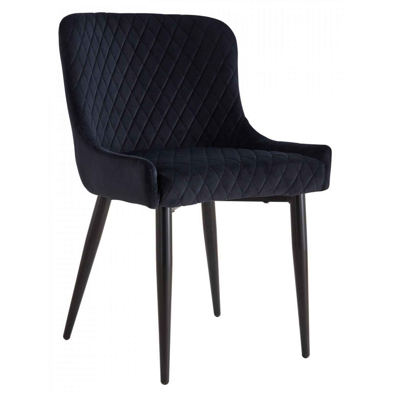 Elegantní zaoblený design jídelní židle podtrhuje okrasný prošev sametové černé látky - židle tak vnese do jídelny noblesní atmosféru i pohodlí. Elegantní zaoblený design jídelní židle podtrhuje okrasný prošev sametové látky v černé barvě- židle tak vnese do každé jídelny noblesní atmosféru a pohodlí zároveň. - stabilní konstrukce: kov, dřevovláknitá deska - podnož/nohy: kovový kulatý profil - povrchová úprava: černý mat - polstrovaný sedák/opěrák (polyuretanová výplň) - potah: látka v elegantní sametové optice, barva černá (složení: 100% polyester) - okrasný kosočtvercový prošev sedací/opěrné části (v barvě potahu) - zaoblené tvary - sedák: středně měkký - opěrák: pohodlně zaoblený (výška opěradla 39 cm) - elegantní noblesní design - stabilní - doporučená nosnost do 100 kg - dodáváno v demontu