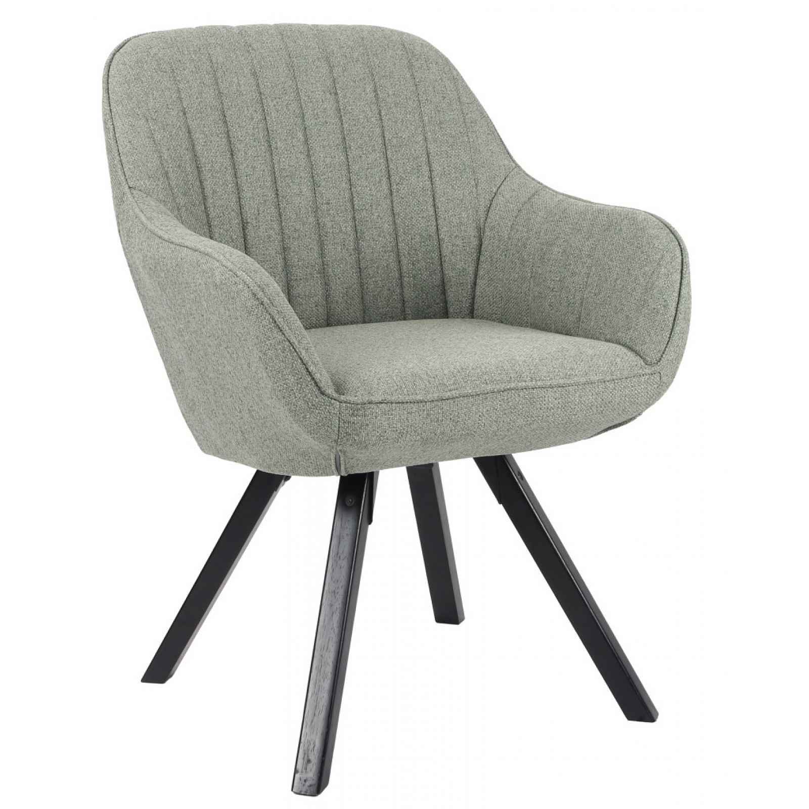 Pohodlná jídelní židle ve tvaru zaobleného křesílka je očalouněna tkaninou v barvě světle zelená. Podnož z černě lakovaného masivního dřeva zajišťuje stabilitu. - konstrukce: masivní kaučukové dřevo, kov, dřevovláknitá deska - podnož/nohy: hranatý profil, masivní kaučukové dřevo - povrchová úprava: černý lak - tvar křesílka - polstrovaný sedák/opěrák (polyuretanová výplň) - potah: látka Lumos 74 – jemně strukturovaná polyesterová tkanina, barva světle zelená (složení: 100% polyester, otěruvzdornost: 40.000 cyklů) - svislý prošev potahu, zádový zip - sedák: klasicky tuhý - opěrák: komfortní sklon - sedák otočný o 360° - výška sedu: 48 cm - hloubka sedu: 46 cm - šířka sedu: 40 cm - výška opěradla: 38 cm - trendový styl - stabilní - doporučená nosnost do 110 kg - dodáváno v demontu