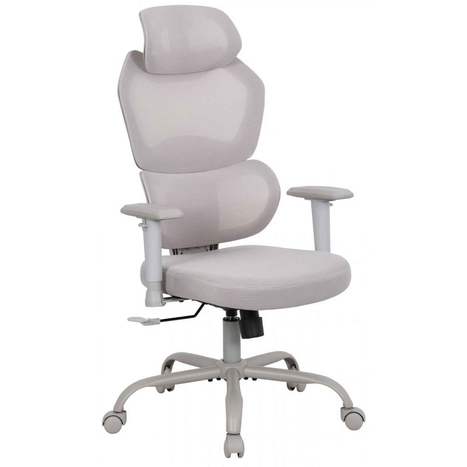 Moderní kancelářská židle ve světle šedé barvě má ergonomické tvary, funkci výškového nastavení, funkci houpací, aretaci sklonu opěradla a polohování opěrky. Moderní kancelářská židle ve světle šedé barvě má ergonomické tvary, funkci výškového nastavení, funkci houpací, aretaci sklonu opěradla a nastavitelný sklon opěrky hlavy. Navíc můžete nastavovat výšku bočních područek. Látka ze síťoviny zajišťuje vysoký komfort a prodyšnost dotykových partií - zvyšuje se tak hygiena během sezení. - konstrukce: kov/tvrzený plast/dřevovláknitá deska - barva konstrukce: světle šedá - 5-ramenná základna na kolečkách (tvrzený plast) - polstrovaný sedák (polyuretanová výplň) - potah sedák: plochá látka, barva světle šedá - opěrák: látka síťovina, barva světle šedá (složení: 100% polyester, zajišťuje vysoký komfort a prodyšnost dotykových partií, zvyšuje tak hygienu během sezení) - boční područky - výškově nastavitelné - sedák: středně měkký - opěrák: pohodlný anatomický tvar, komfortně pružný, prodyšný, bederní podpora - 1 x opěrka krku/hlavy (nastavitelný úhel) - páčka pro ovládání funkcí pod sedákem - funkce výškového nastavení - funkce opěráku (nastavení sklonu a aretace polohy/houpací funkce) - moderní styl - rozpětí výšky sedu: 47-56,5 cm - hloubka sedu: 49 cm - šířka sedu: 48 cm - doporučená nosnost do 120 kg - dodáváno v demontu