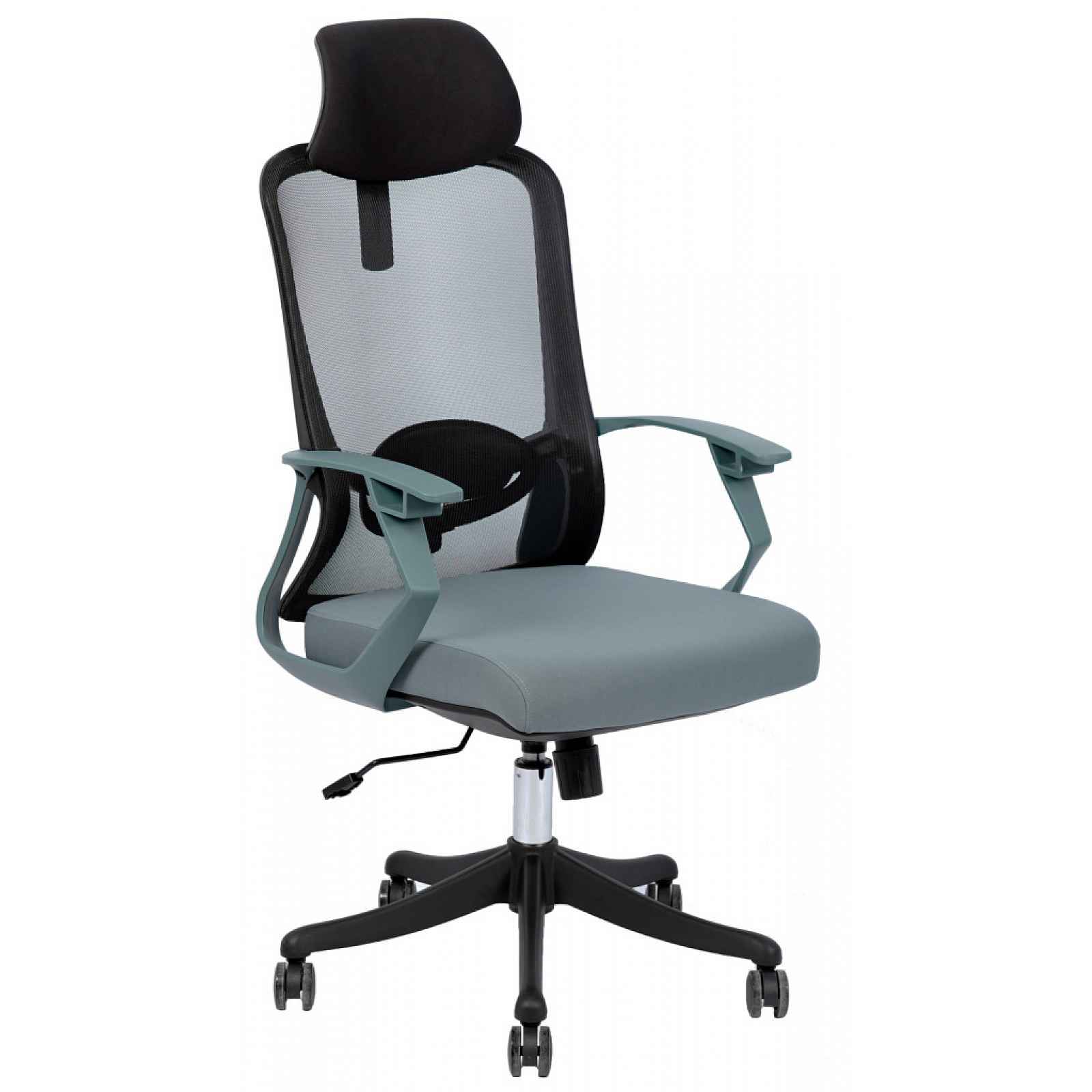 Moderní kancelářská židle má příjemně měkký sedák a pohodlný anatomický tvar. Kromě výškového nastavení má funkci houpací a nastavitelný sklon opěrky hlavy. Potažena kombinací černé síťoviny a šedo-modré látky. Oceníte také zvýšenou nosnost této židle. - konstrukce: kov/tvrzený plast/dřevovláknitá deska - barva konstrukce: černá/šedo-modrá - 5-ramenná základna na kolečkách (tvrzený plast) - polstrovaný sedák (polyuretanová výplň) - potah sedák: plochá látka, barva šedo-modrá - opěrák: látka síťovina, barva černá (složení: 100% polyester, zajišťuje vysoký komfort a prodyšnost dotykových partií, zvyšuje tak hygienu během sezení) - boční područky - sedák: měkký komfort - opěrák: pohodlný anatomický tvar, komfortně pružný, prodyšný, bederní podpora - 1 x opěrka krku/hlavy (nastavitelný úhel) - páčka pro ovládání funkcí pod sedákem - funkce výškového nastavení - funkce opěráku (poloha pevná nebo houpací) - doporučená nosnost do 150 kg - dodáváno v demontu