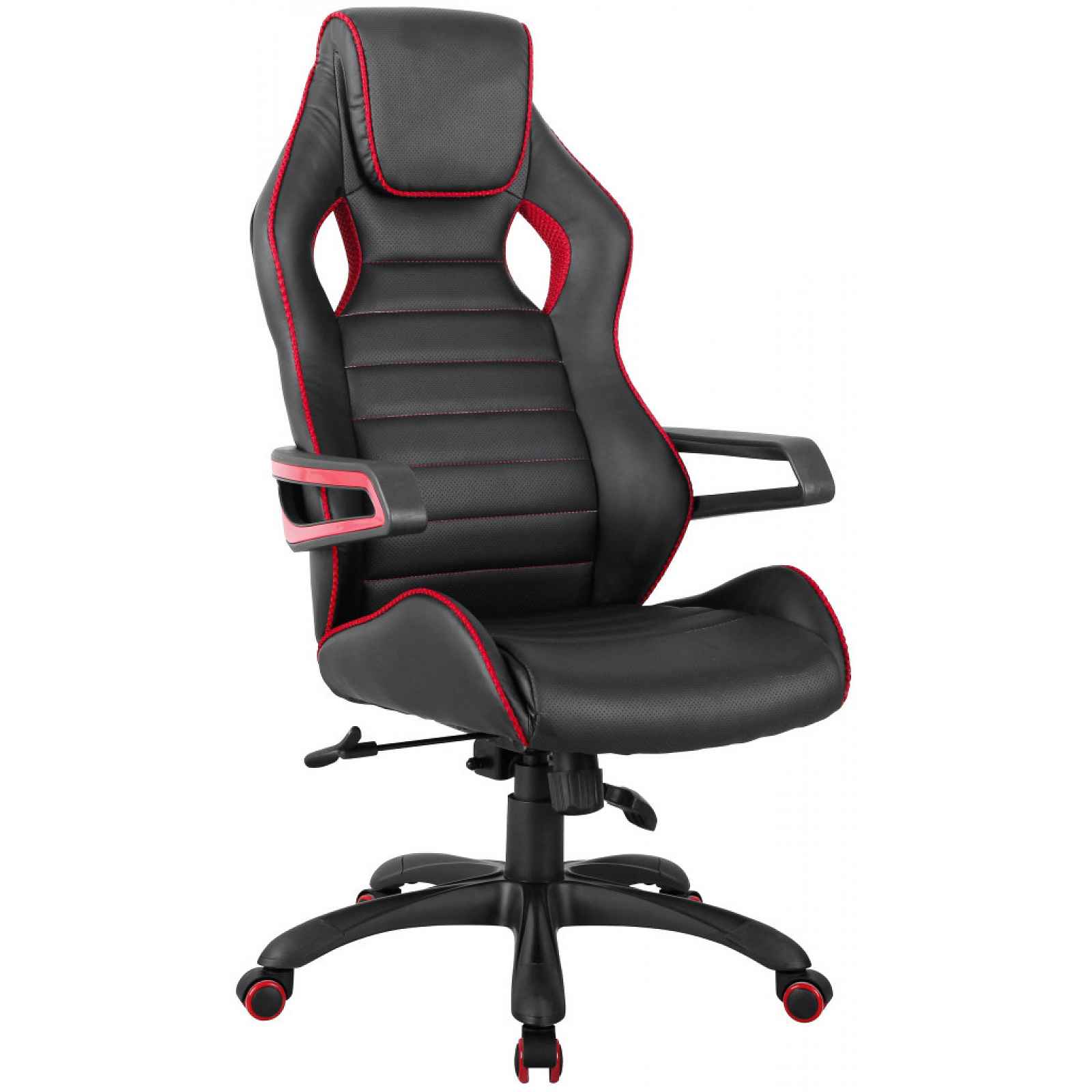 Pohodlné pracovní křeslo v anatomickém tvaru má moderní design a bude Vám kvalitní oporou při kancelářské práci i při hraní videoher. Očalouněno černou ekokůží a doplněno černo-červeným látkovým lemem. Oceníte i funkci opěradla, díky které lze nastavit sklon podle aktuální potřeby. - konstrukce: kov/tvrzený plast/dřevovláknitá deska - barva konstrukce: černá/červená - 5-ramenná základna na kolečkách (tvrzený plast) - polstrovaný sedák/opěrák (polyuretanová výplň) - potah sedák/opěrák: ekokůže, barva černá - boční lem: látka ze síťoviny, barva černá/červená - dekorativní červený prošev potahu - boční loketní opěrky - sedák: komfortně měkký, prostorný - opěrák: anatomický tvar (kvalitní bederní opora), boční vedení, vysoký = opora krku/hlavy - páčka pro ovládání funkcí pod sedákem - funkce výškového nastavení - funkce opěráku (nastavení sklonu a aretace polohy) - moderní sportovní design - doporučená nosnost do 120 kg - dodáváno v demontu