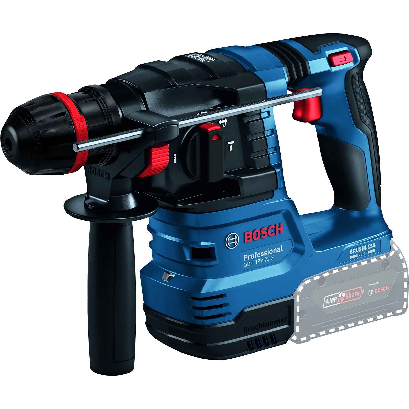 bez akumulátoru, napětí 18 V, ONECHUCK, energie příklepu 2 J, 4 675 příklepů/min, upínací systém SDS plus, válcový, HEX, průměr vrtání 26/22/13 mm (dřevo/beton/ocel), 88×208×322 mm, hmotnost 2,6 kg, rukojeť, hloubkový doraz